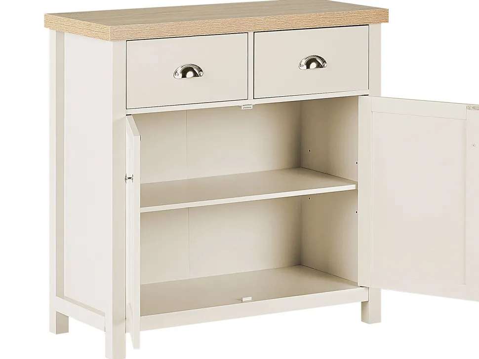 Be the first to review “Aparador Com 2 Gavetas E 2 Creme E Cor De Madeira Clara Clio” Cancelar resposta
