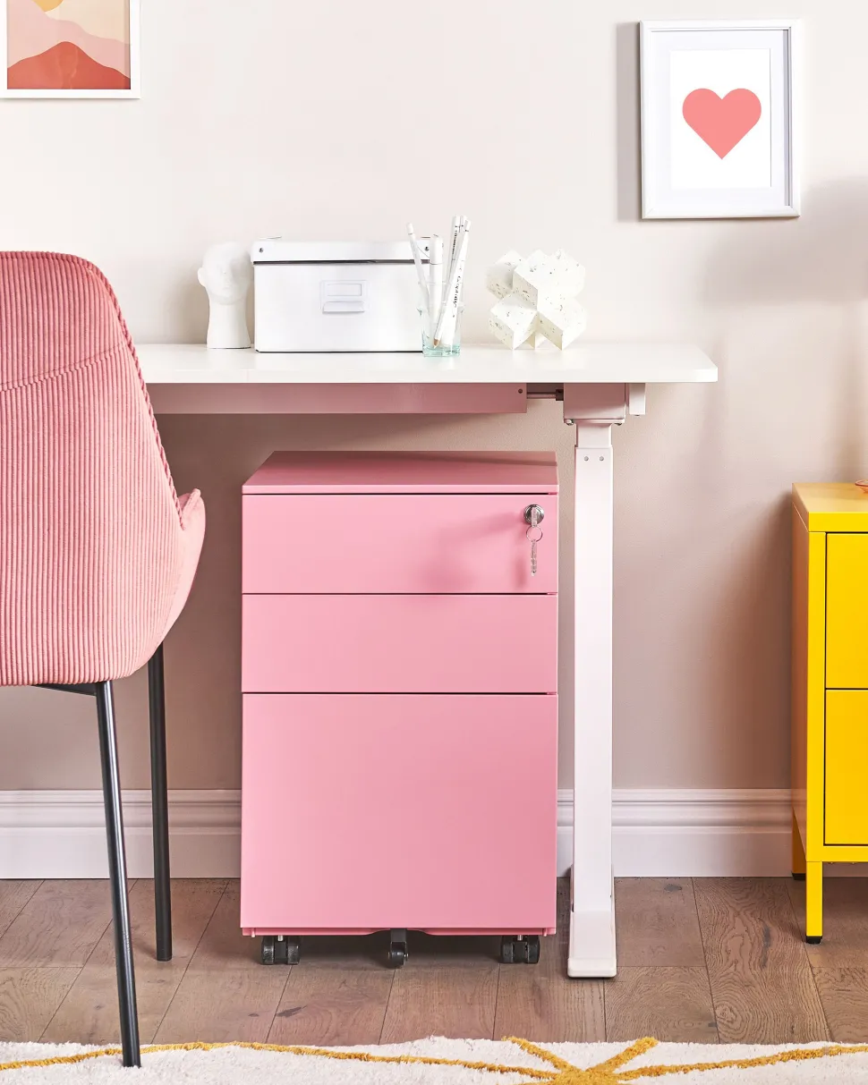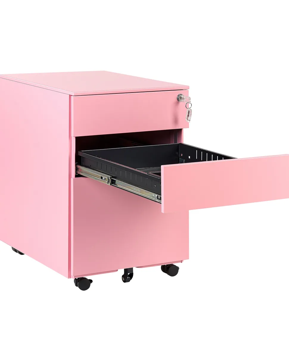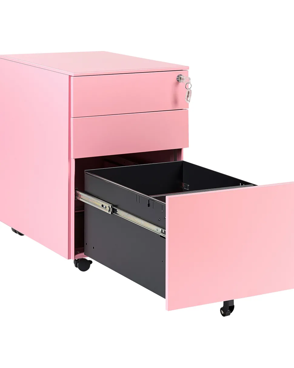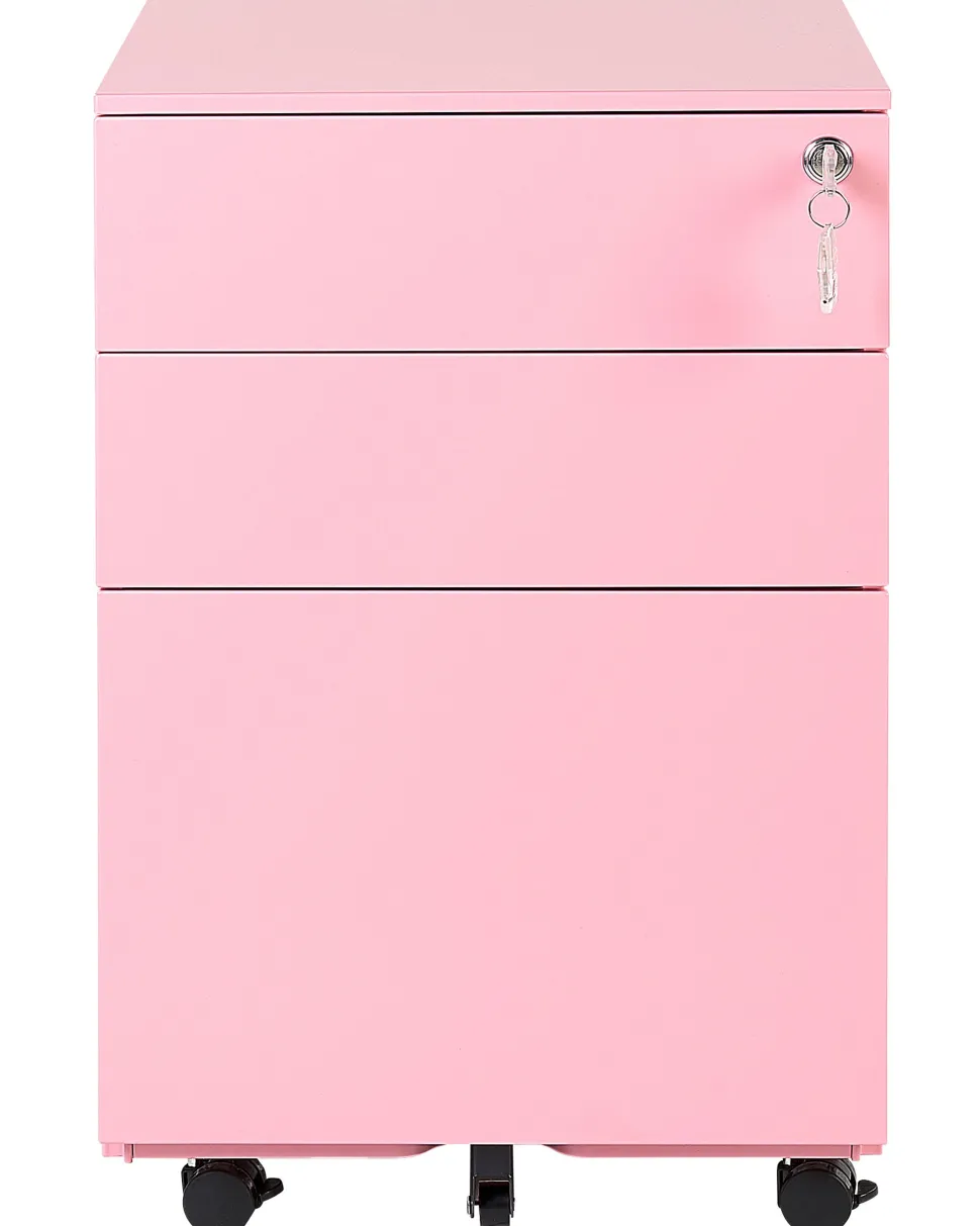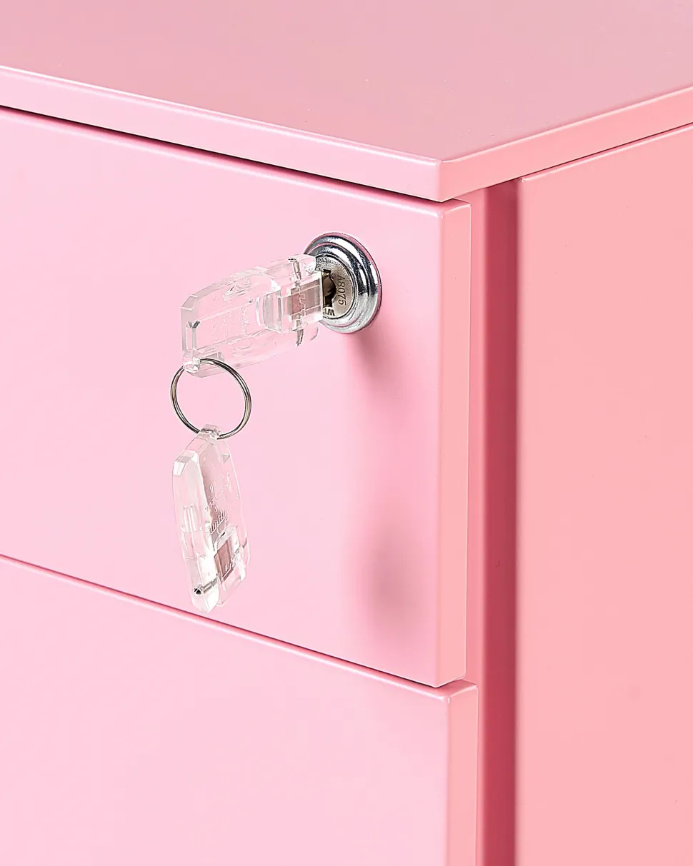 Armario De Metal Rosa Com 3 Gavetas Cami