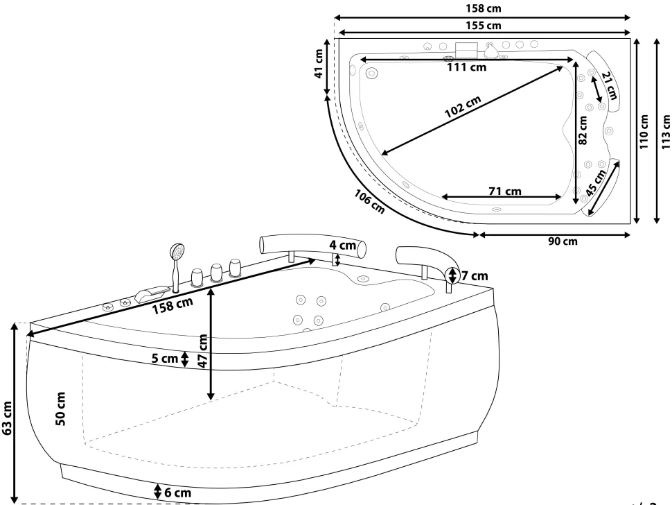 Banheira De Hidromassagem De Canto Versao A Esquerda Em Acrilico Branco Com Led 160 X 113 Cm Paradiso