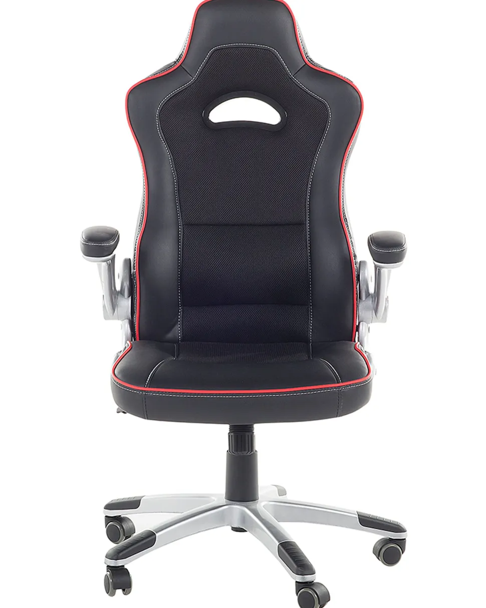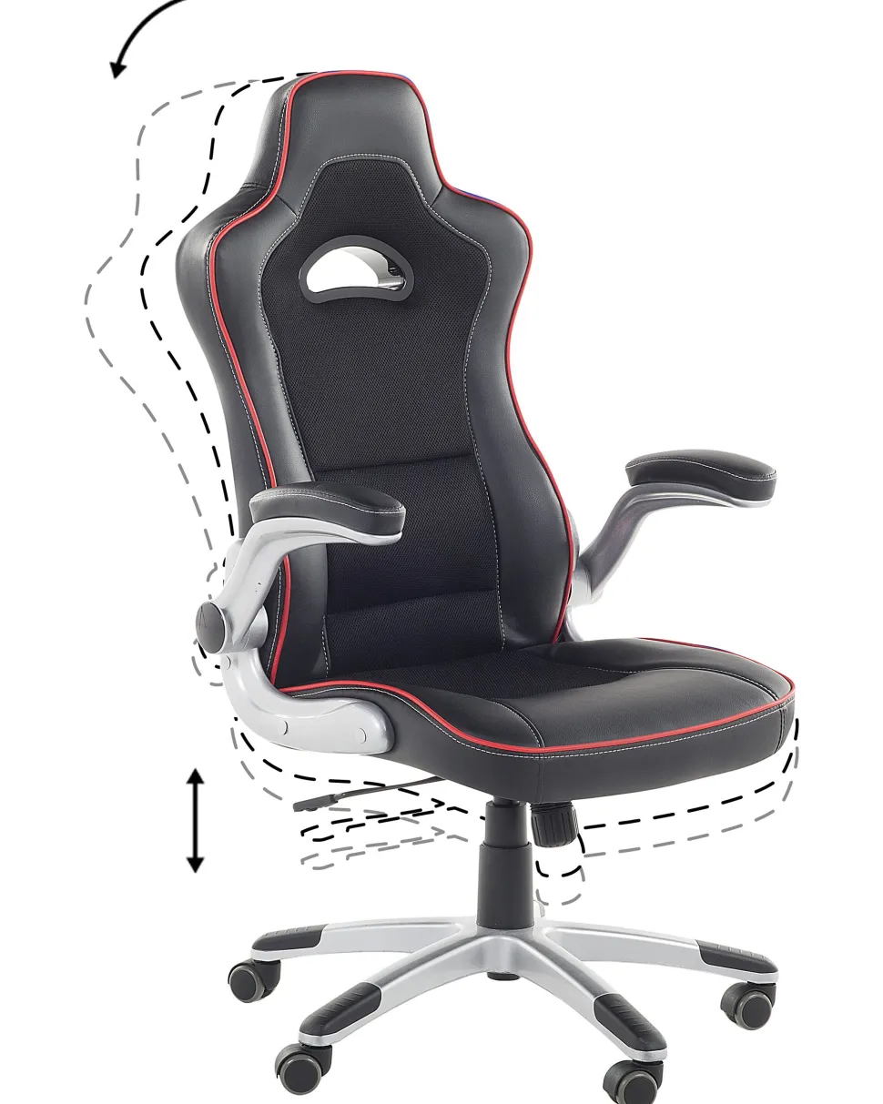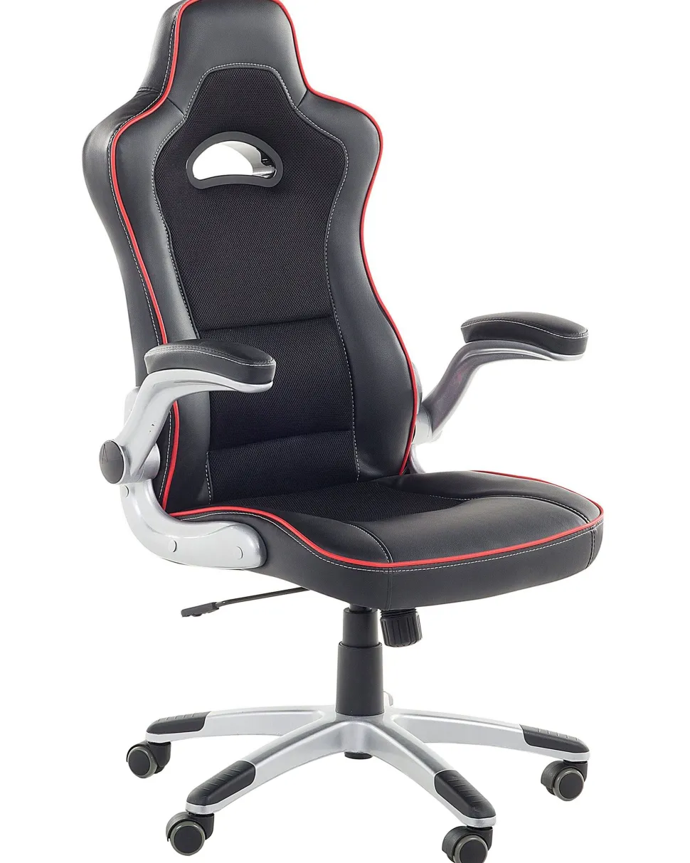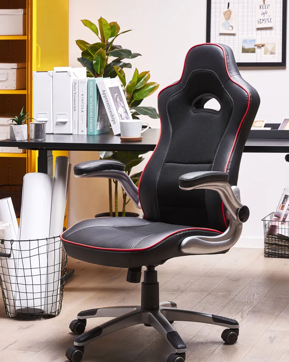 Cadeira De Escritorio Em Pele Sintetica Preta E Vermelha Master