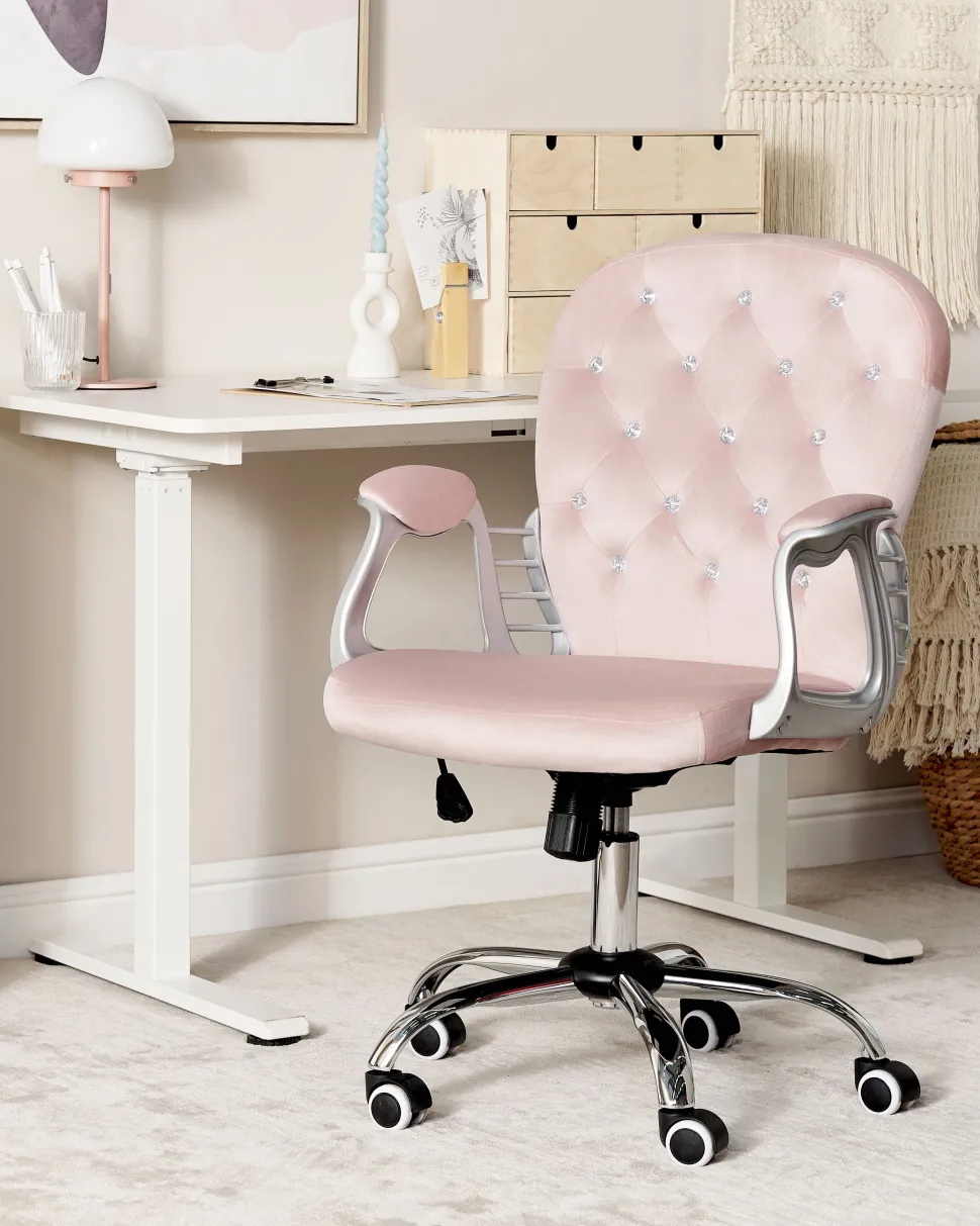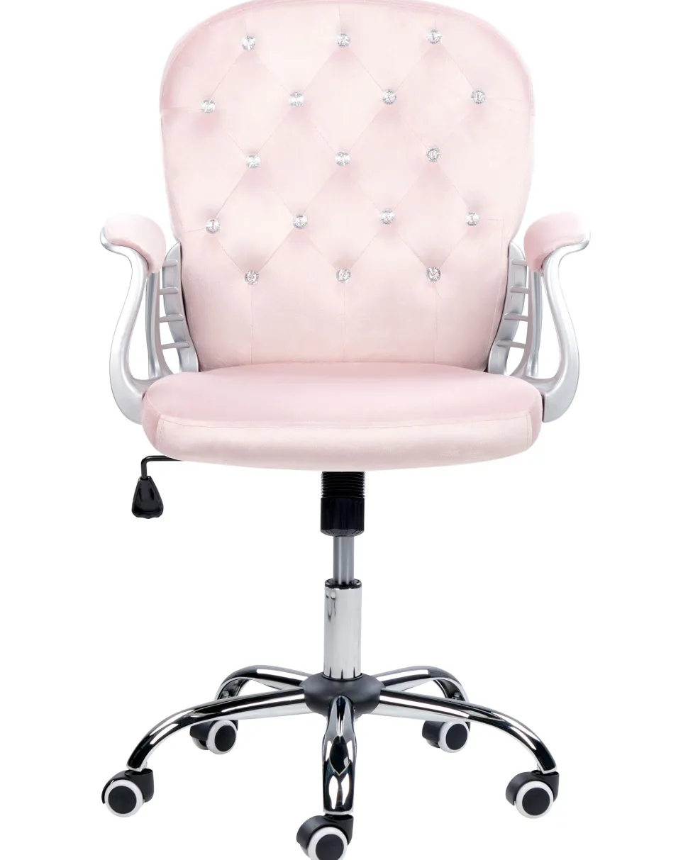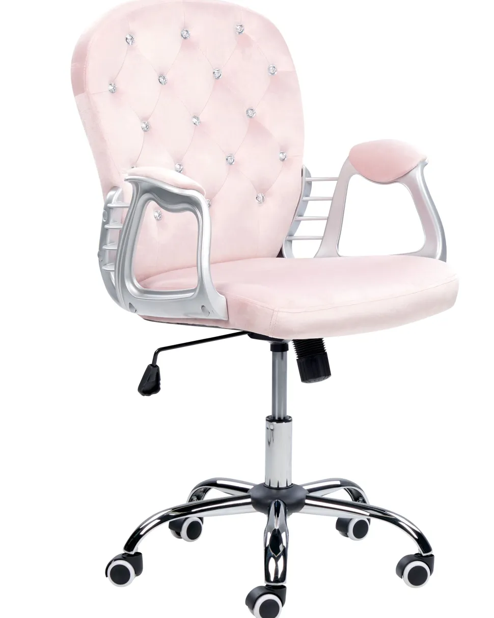 Cadeira De Escritorio Em Veludo Rosa Com Cristais Princess