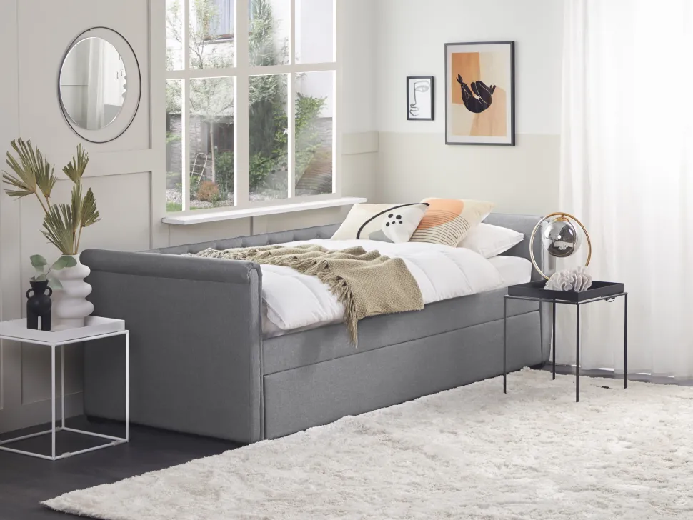 Cama Dupla Em Tecido Cinzento Claro 90 X 200 Cm Libourne