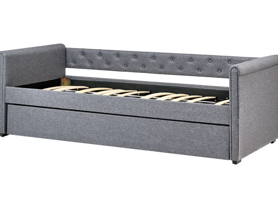 Cama Dupla Em Tecido Cinzento Escuro 90 X 200 Cm Libourne