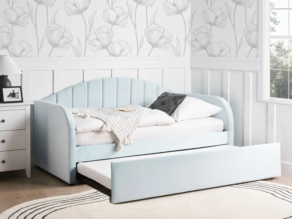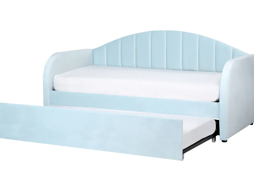 Cama Dupla Em Veludo Azul Claro 90 X 200 Cm Eyburie