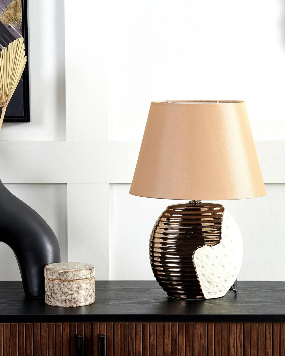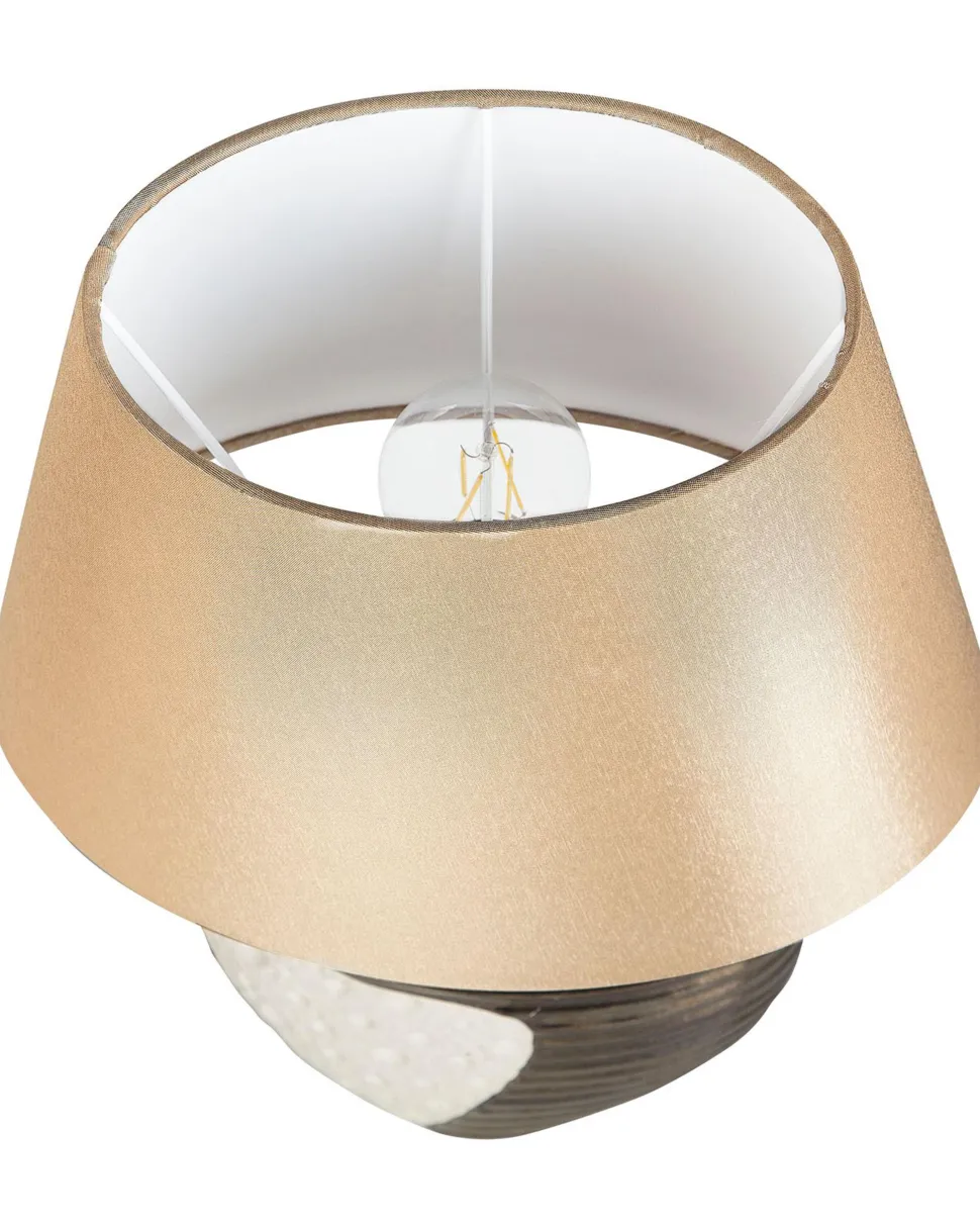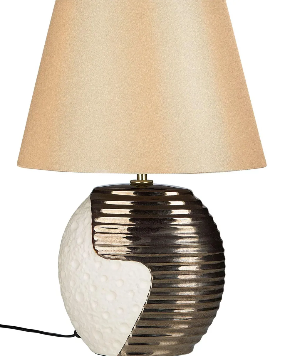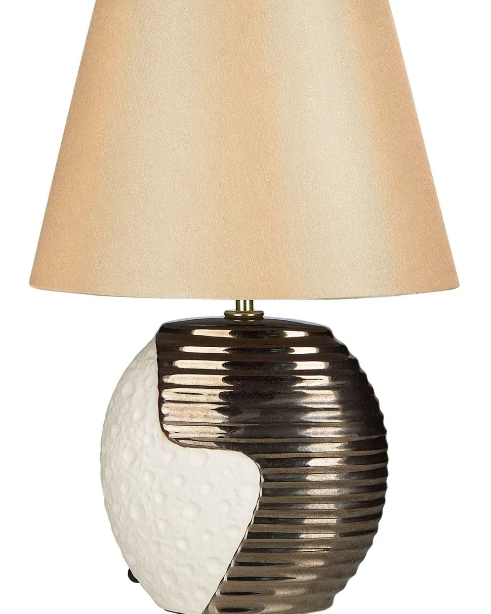 Candeeiro De Mesa Creme E Cor De Cobre Esla