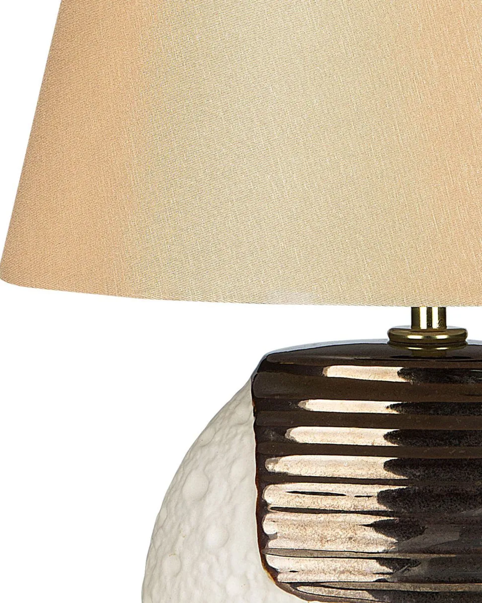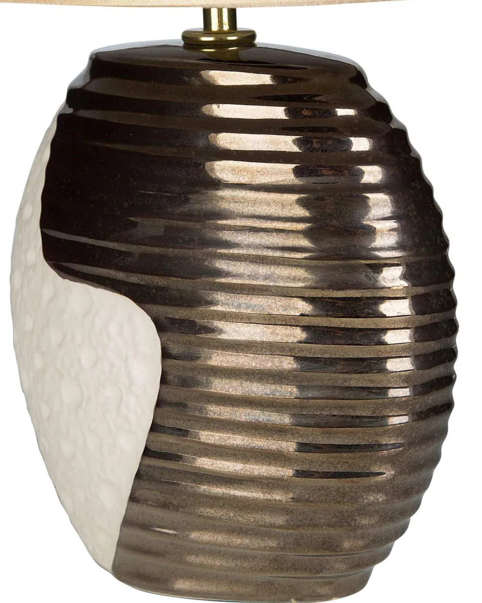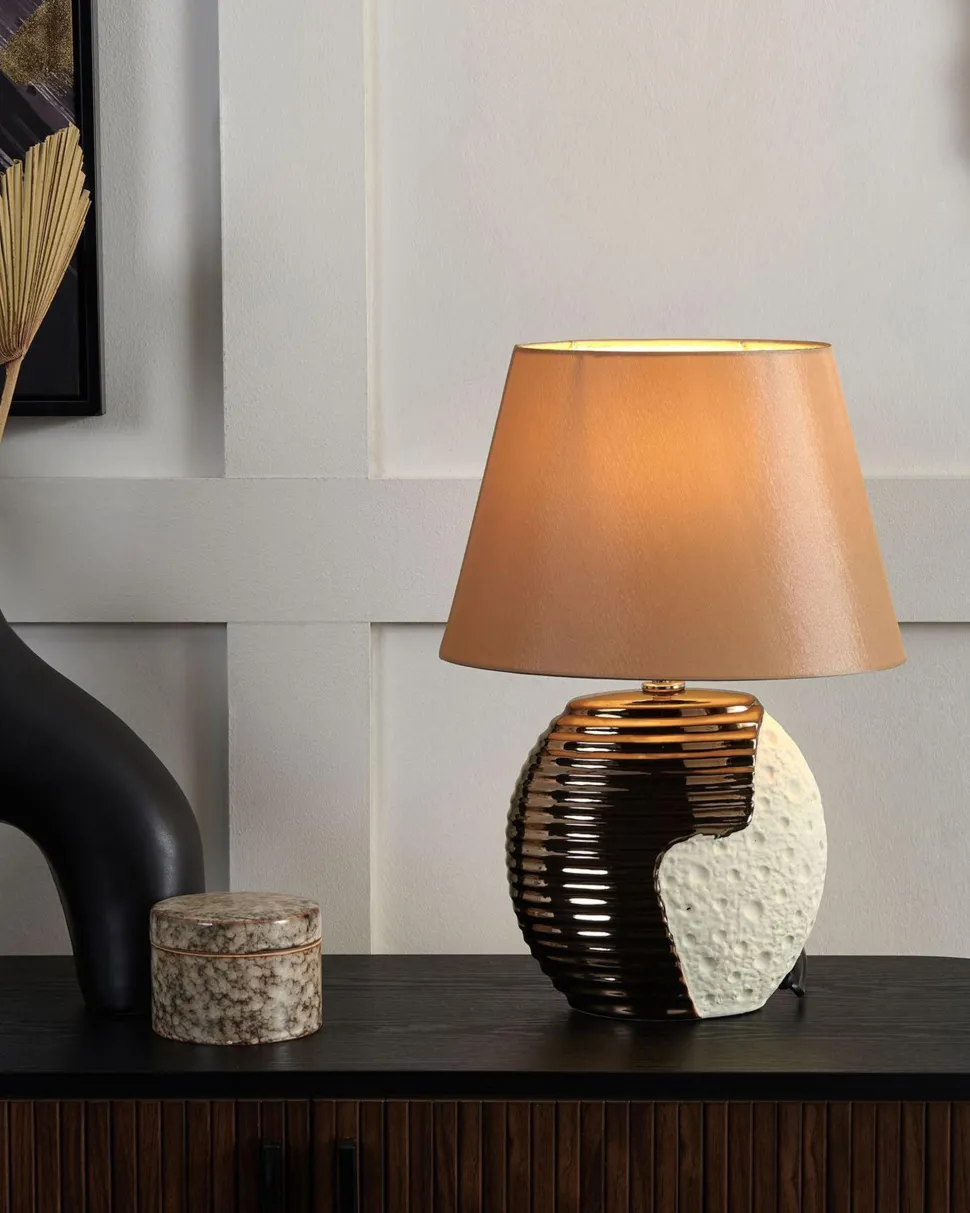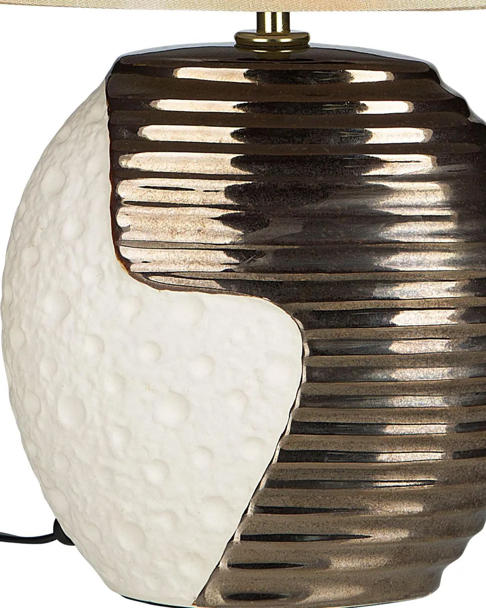Candeeiro De Mesa Creme E Cor De Cobre Esla