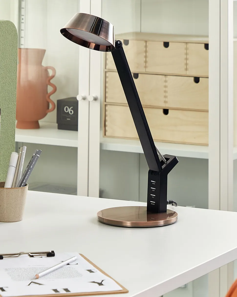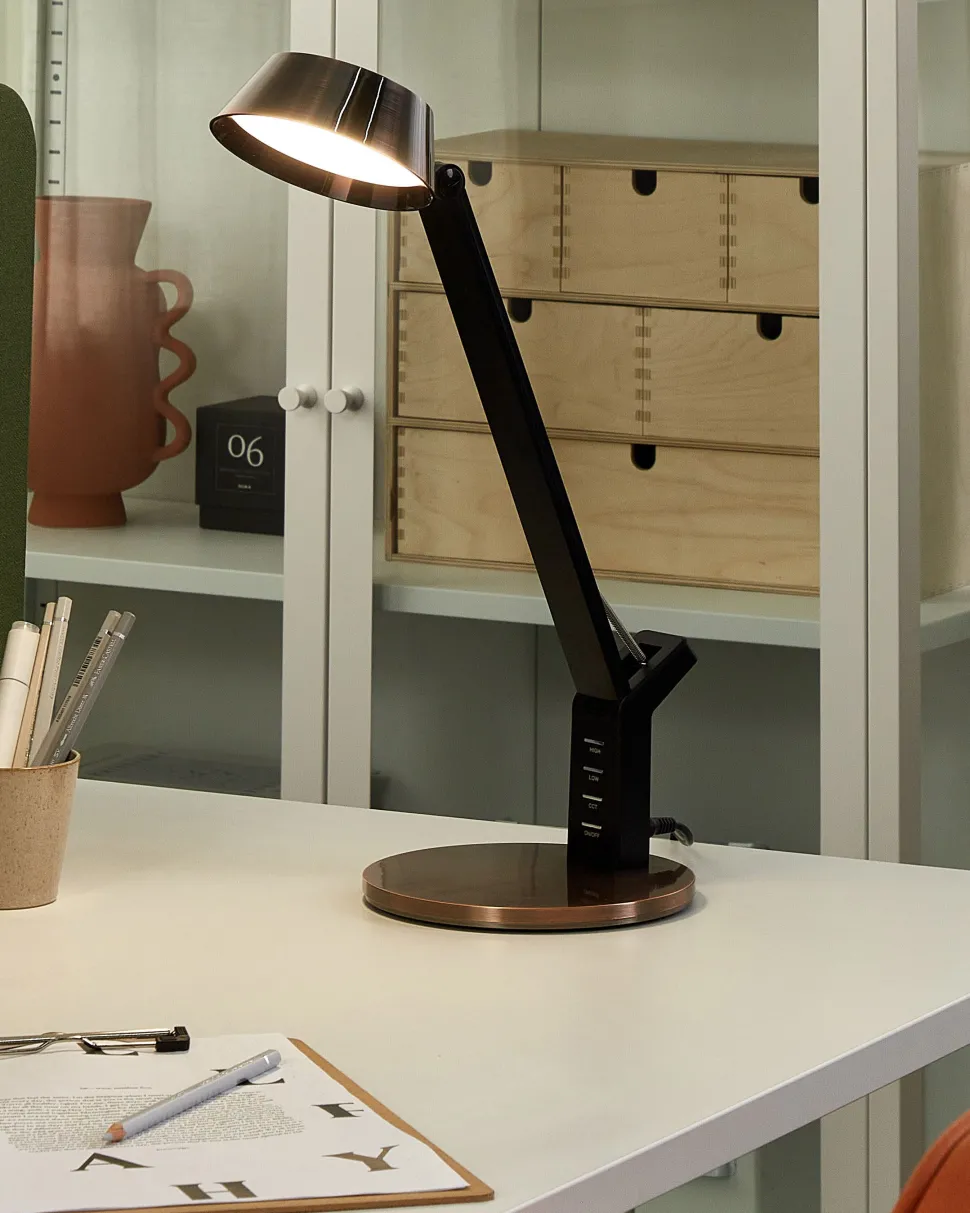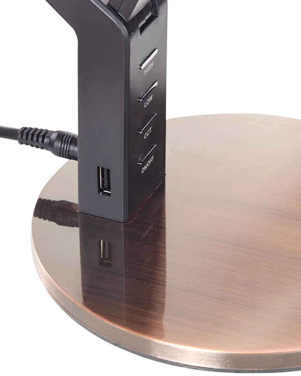 Candeeiro De Mesa Led Em Metal Cor De Cobre Com Porta Usb Chamaeleon