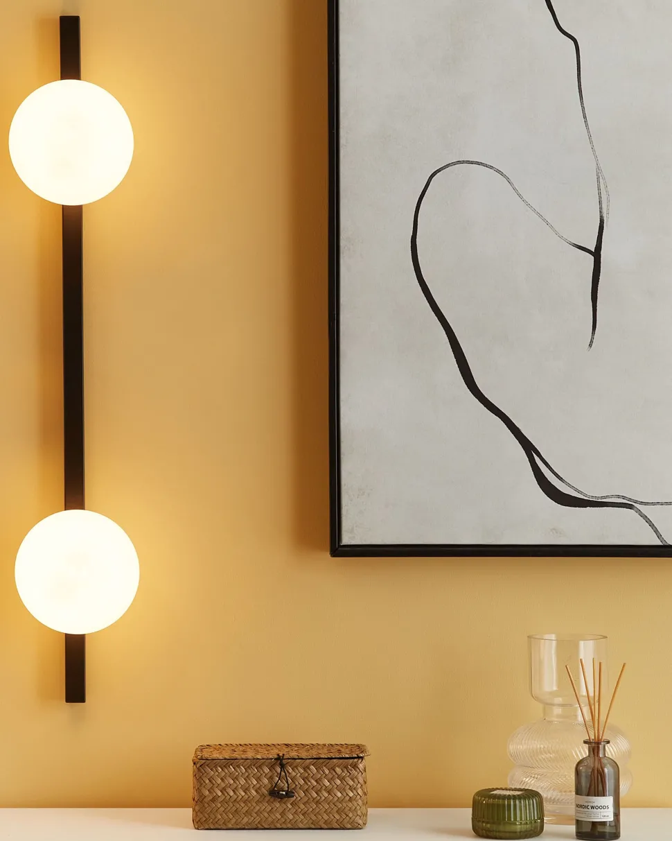 Candeeiro De Parede Com 2 Abajur Em Metal Preto 55 Cm Isabella