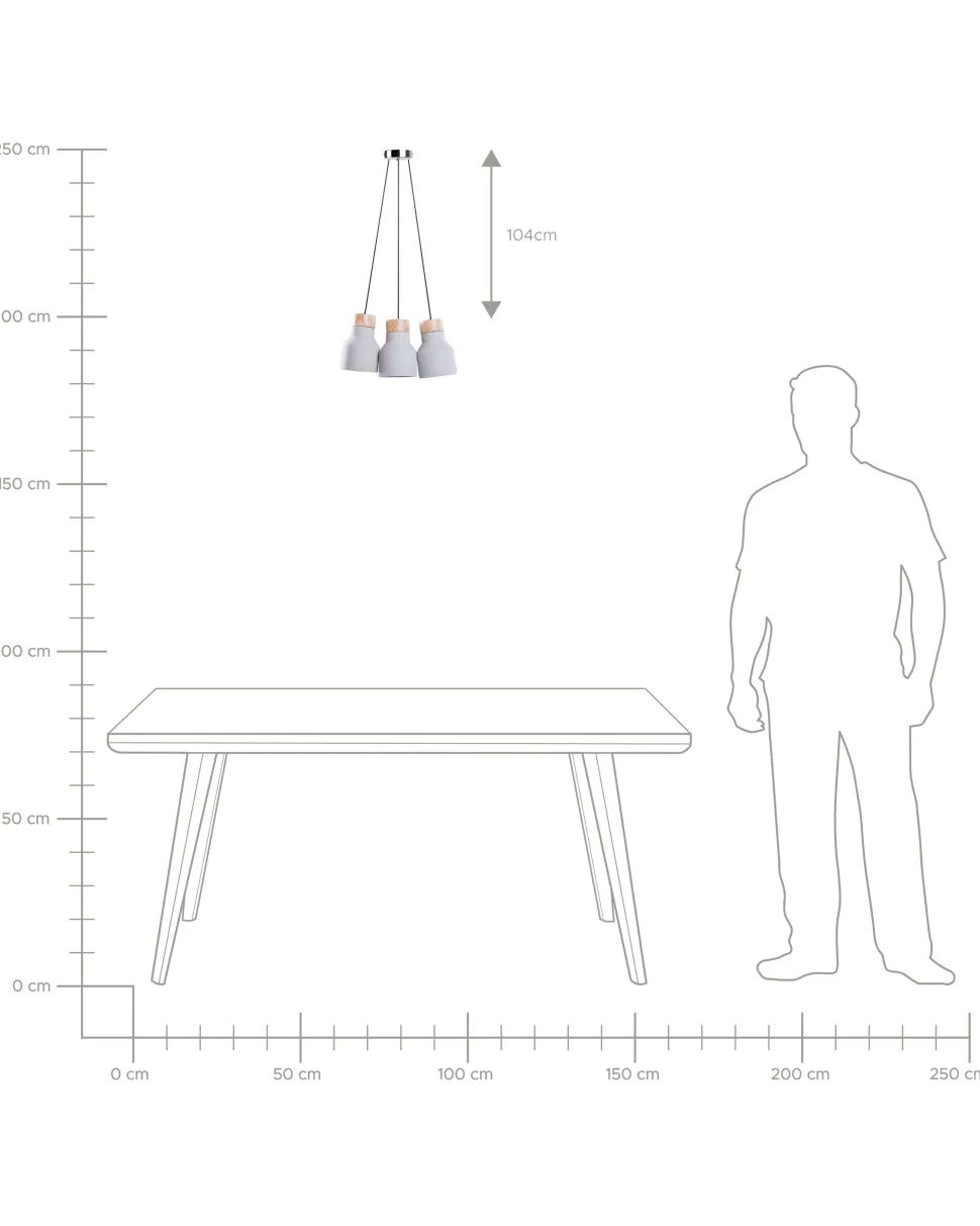 Candeeiro De Teto Com 3 Suportes De Lampada Cinzento E Castanho Claro Baht