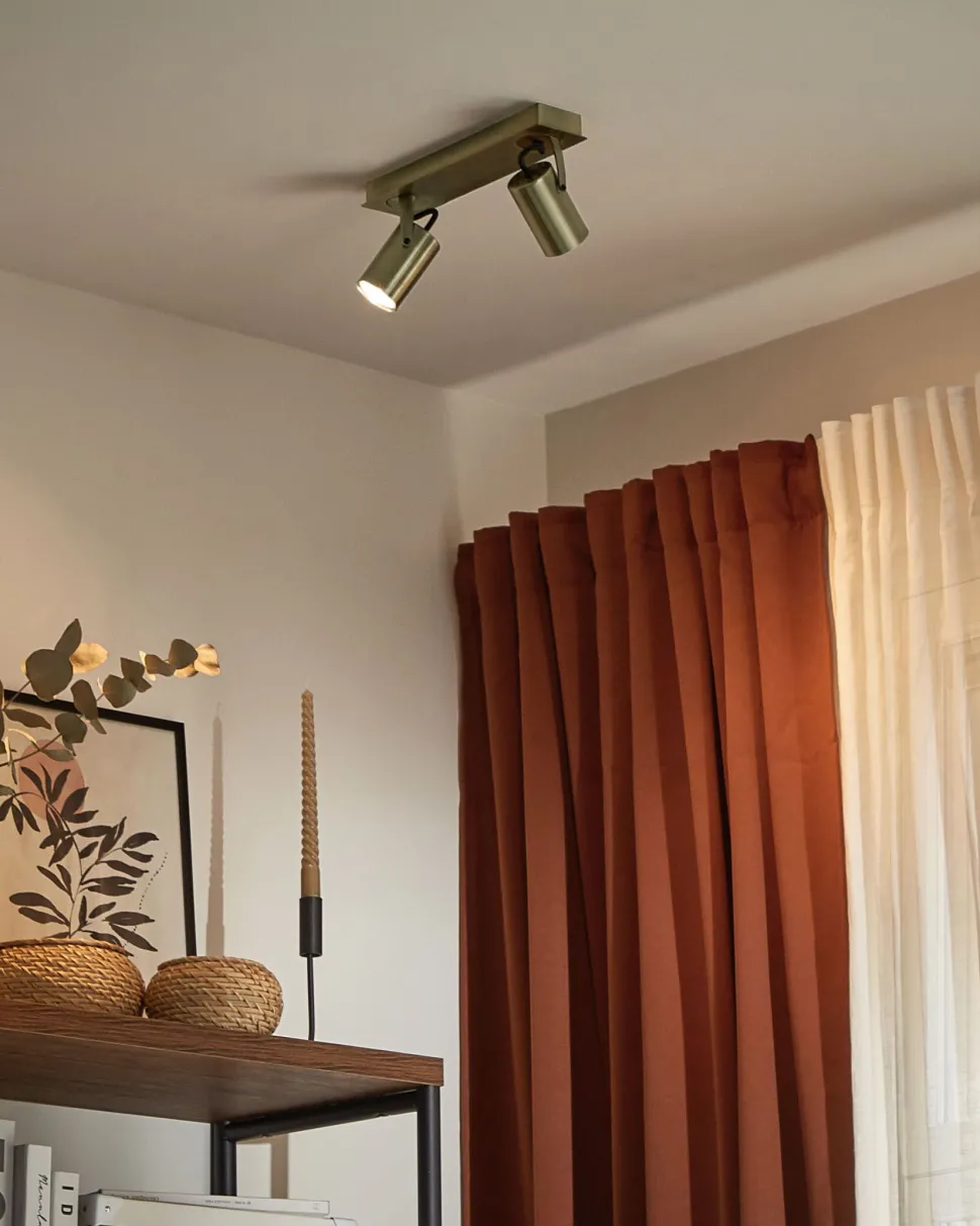 Candeeiro De Teto Em Metal Cor De Bronze Para 2 Lampadas Klip