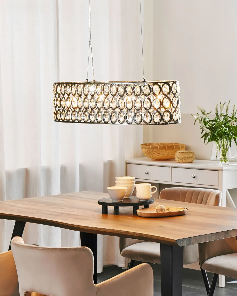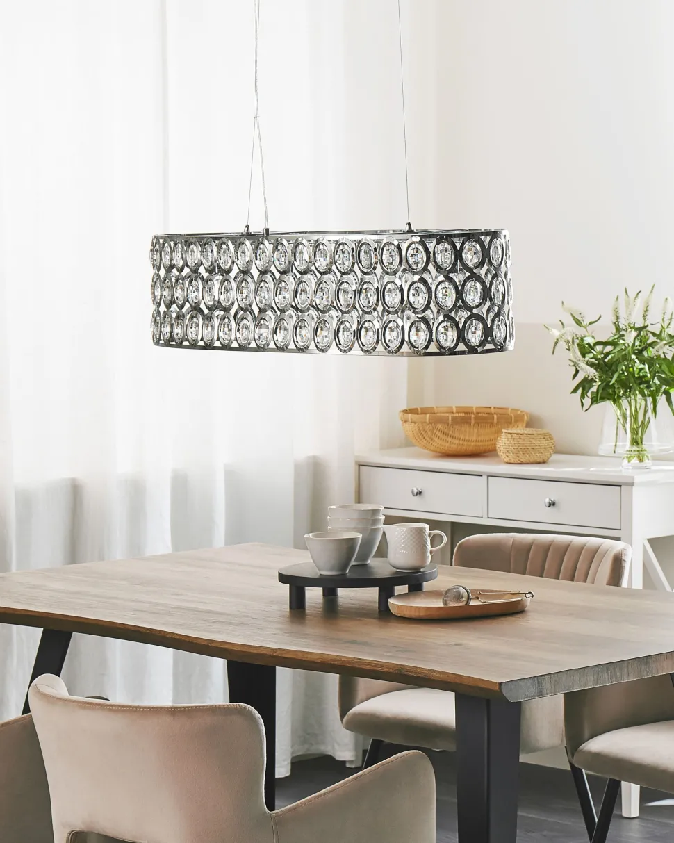 Candeeiro De Teto Em Metal Cromado E Cristal De Acrilico Tenna L