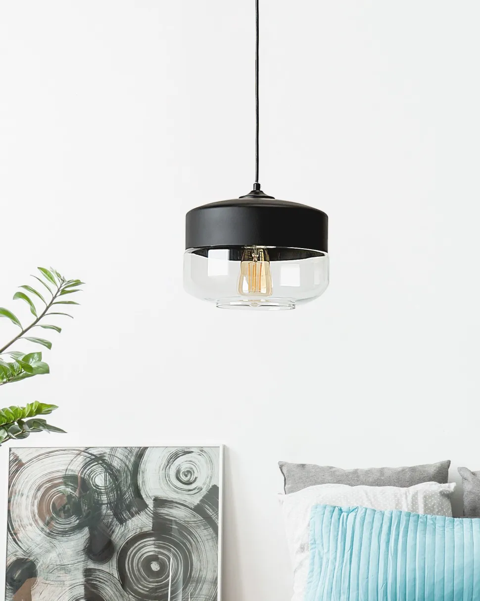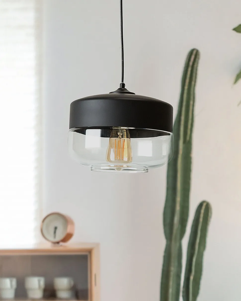 Candeeiro De Teto Em Metal Preto Com Vidro Murray