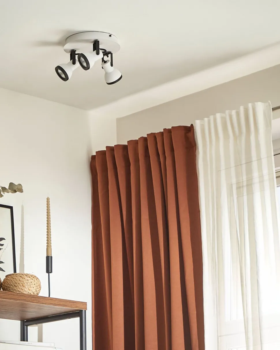 Candeeiro De Teto Em Metal Preto E Branco 3 Luzes Baro