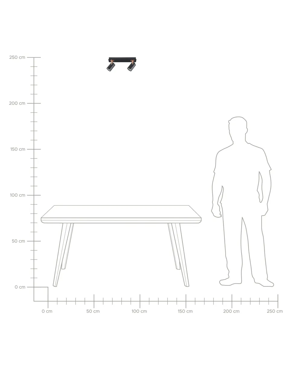 Candeeiro De Teto Em Metal Preto E Cor De Cobre Para 2 Lampadas Klip