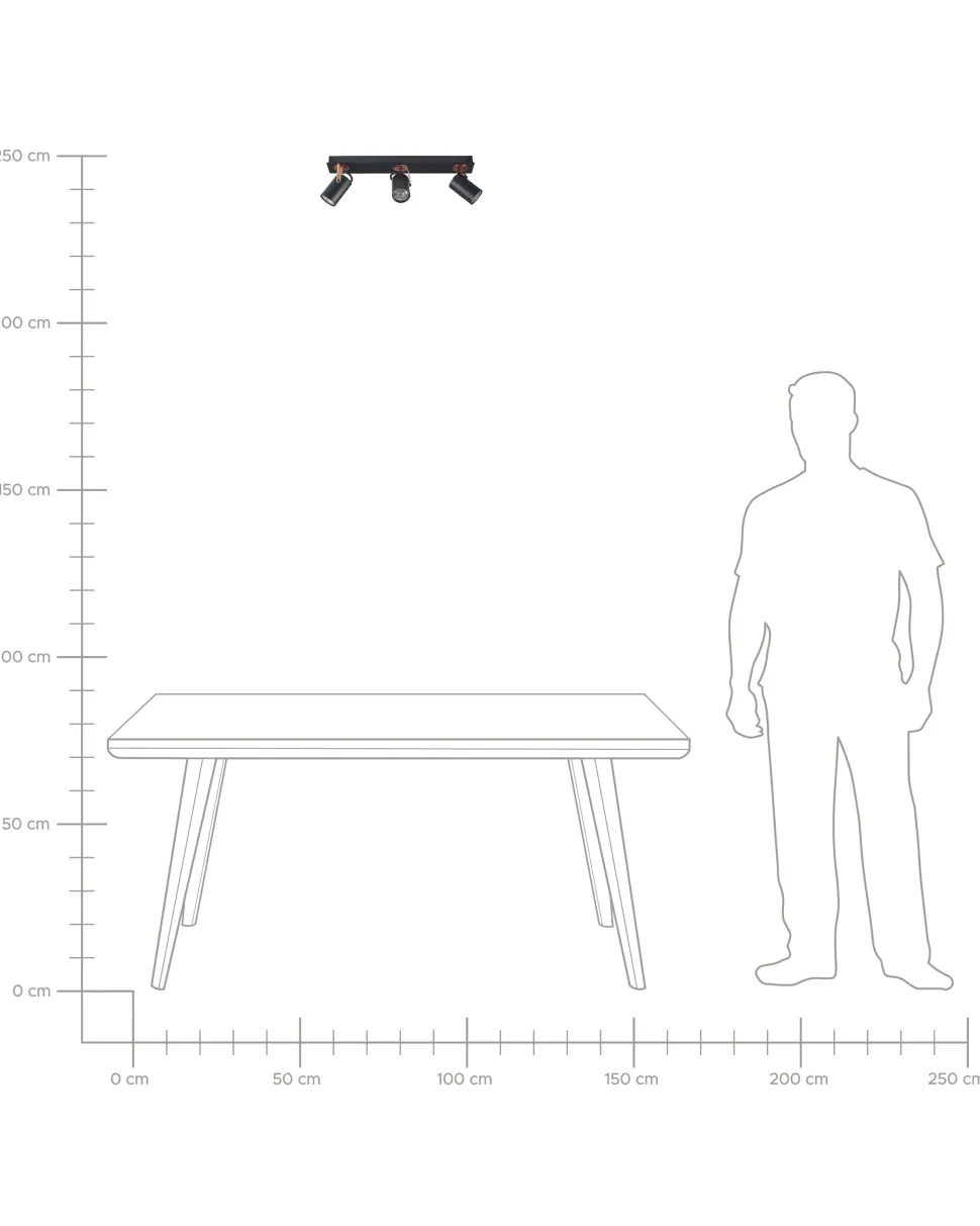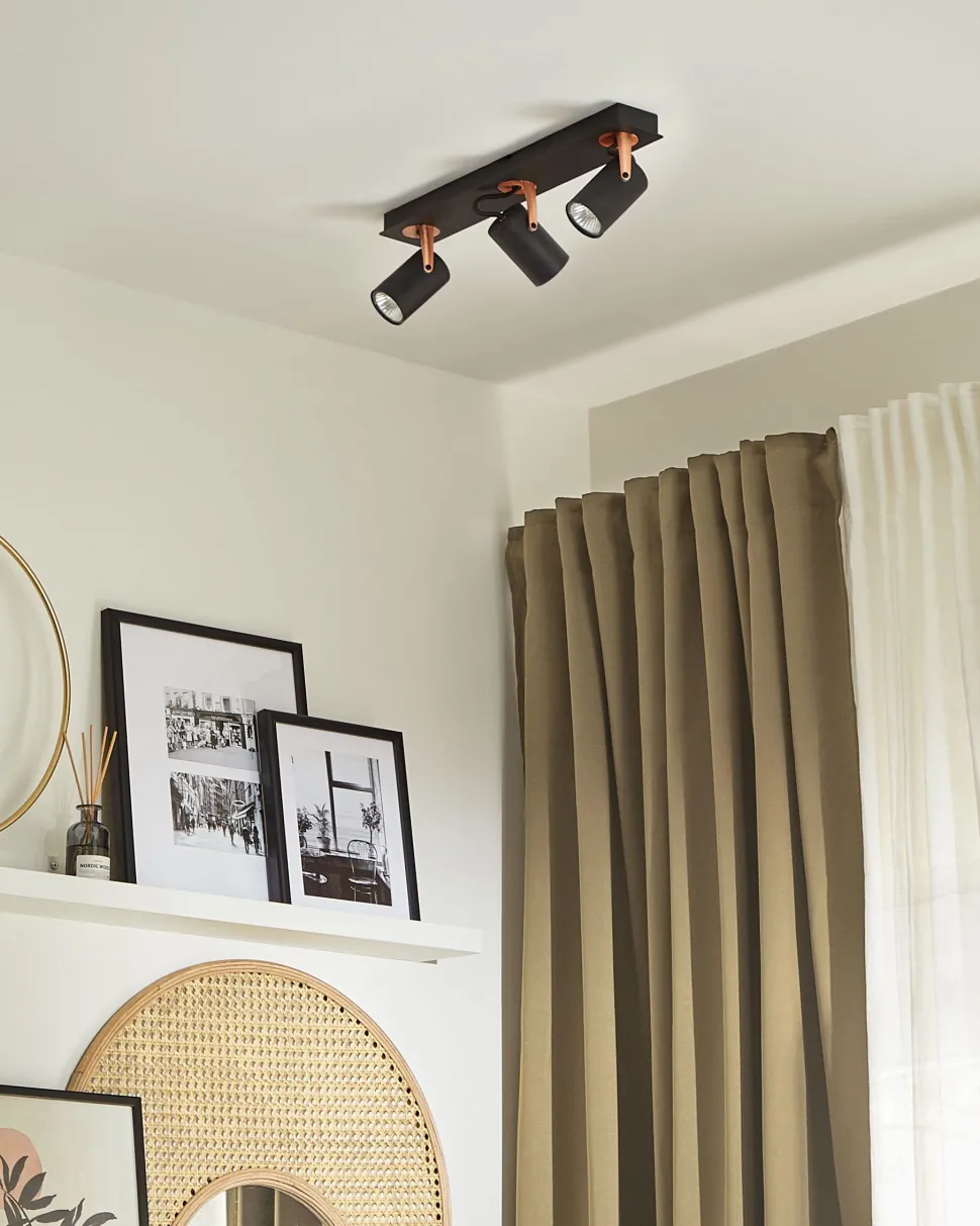 Candeeiro De Teto Em Metal Preto E Cor De Cobre Para 3 Lampadas Klip