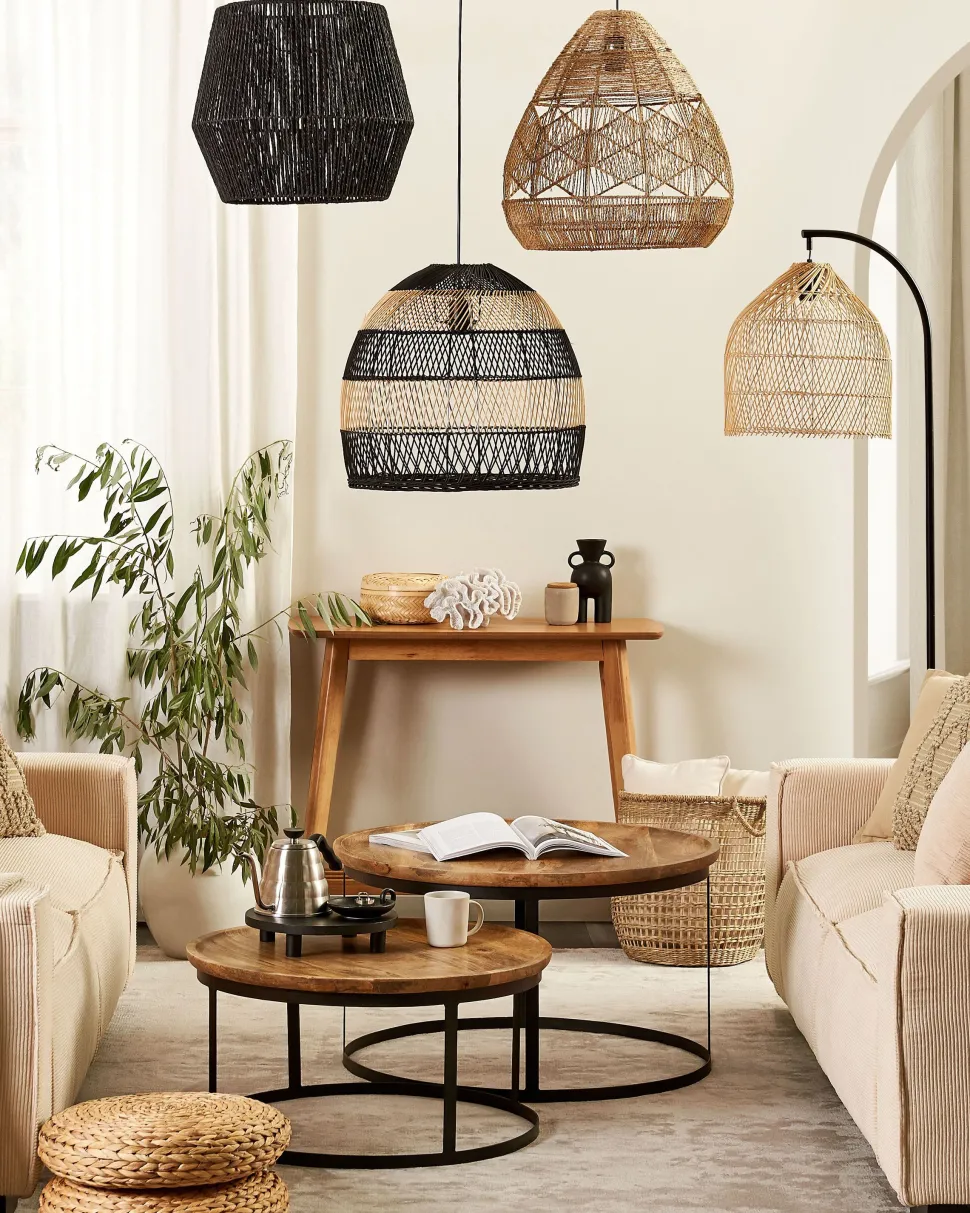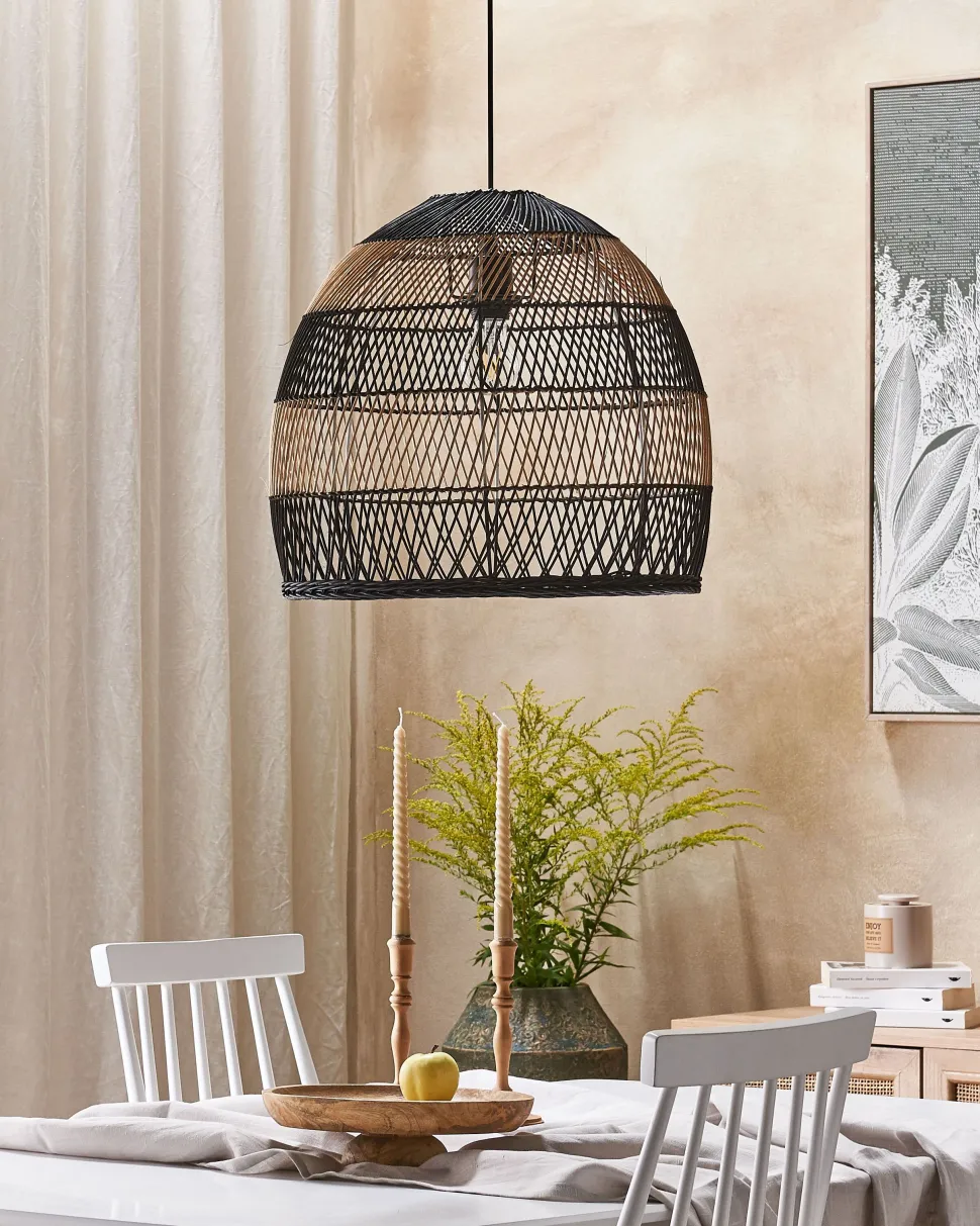 Candeeiro De Teto Em Rattan Cor Natural E Preto Bumi