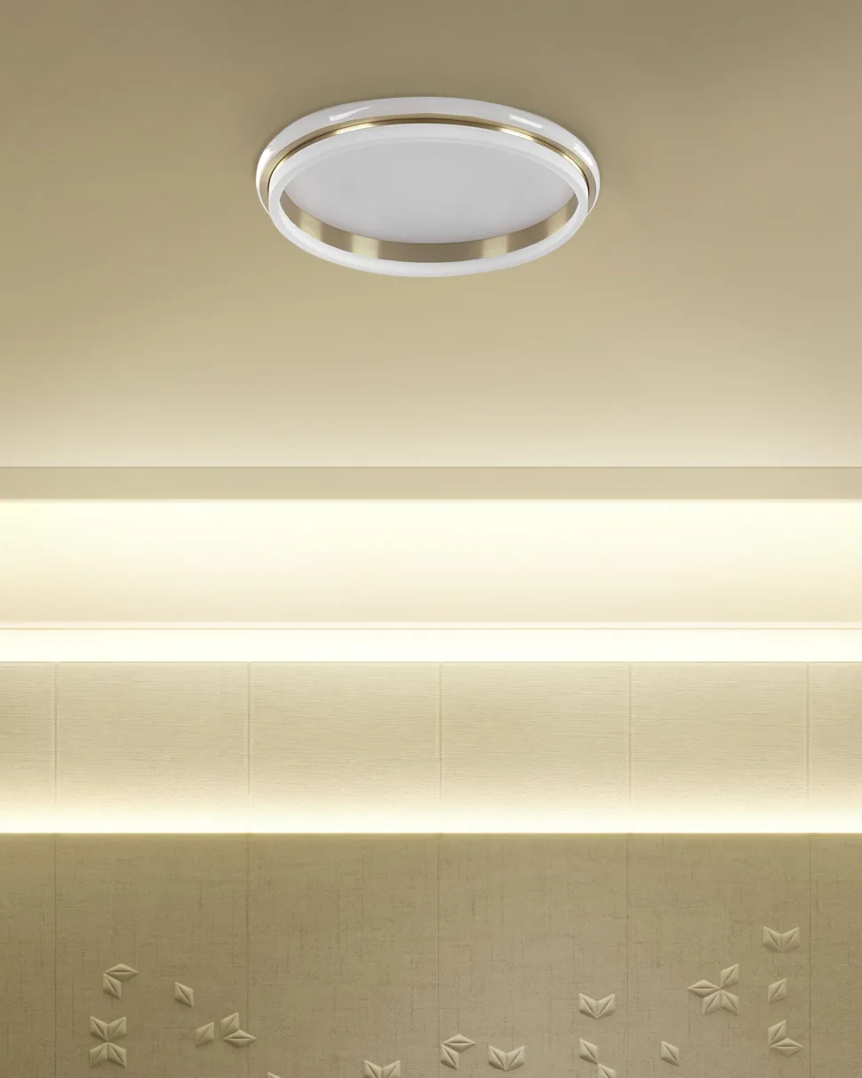 Candeeiro De Teto Led 64 Cm Metal Branco E Dourado Taping