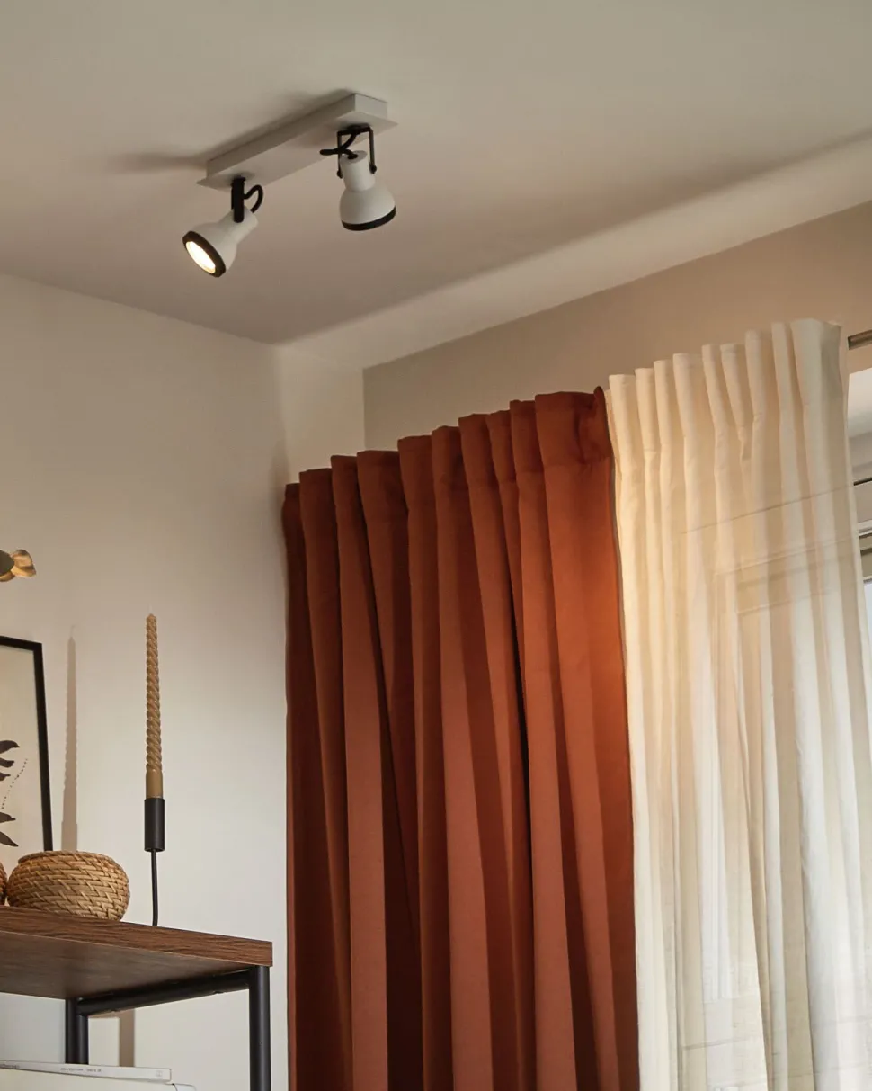 Candeeiro De Teto Metal Preto E Branco 2 Luzes Baro