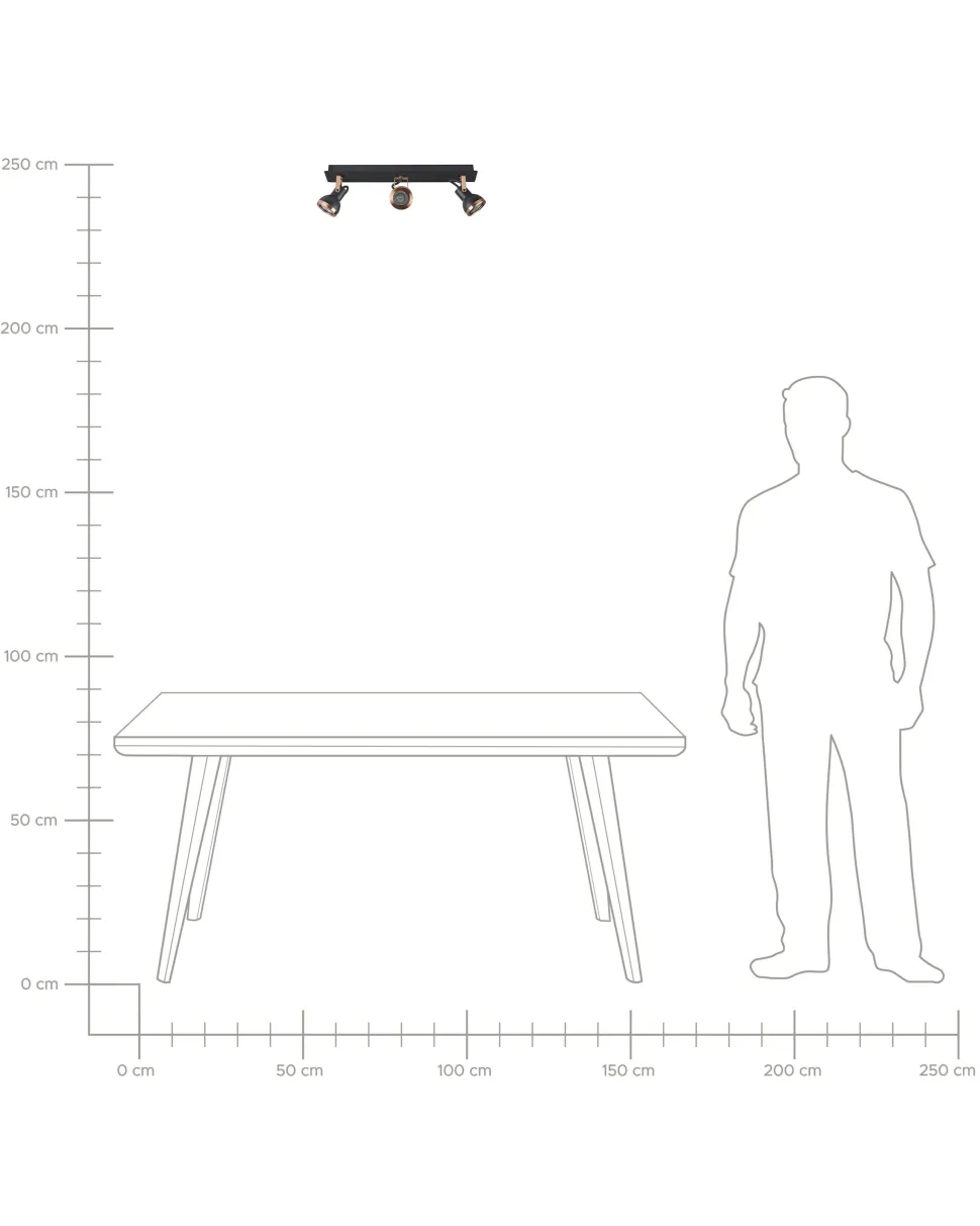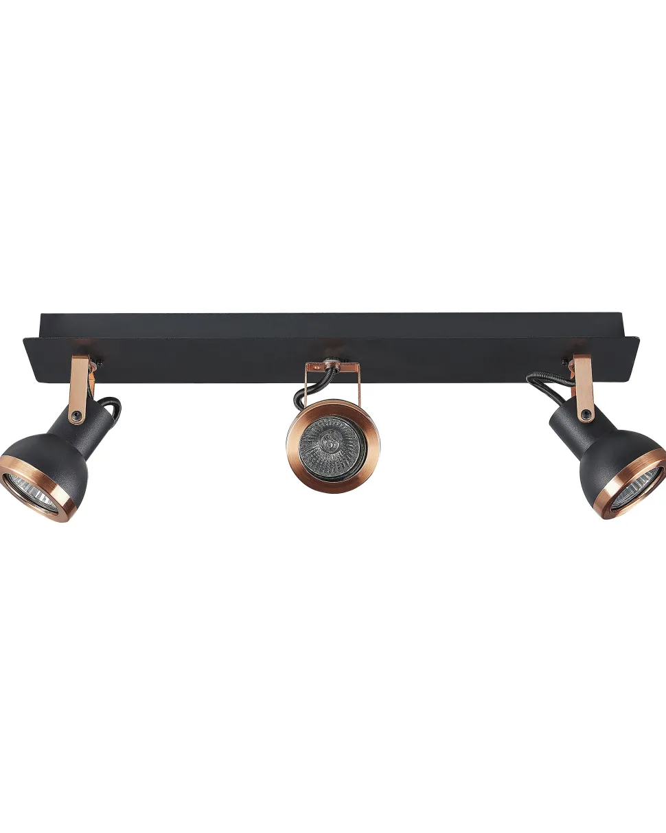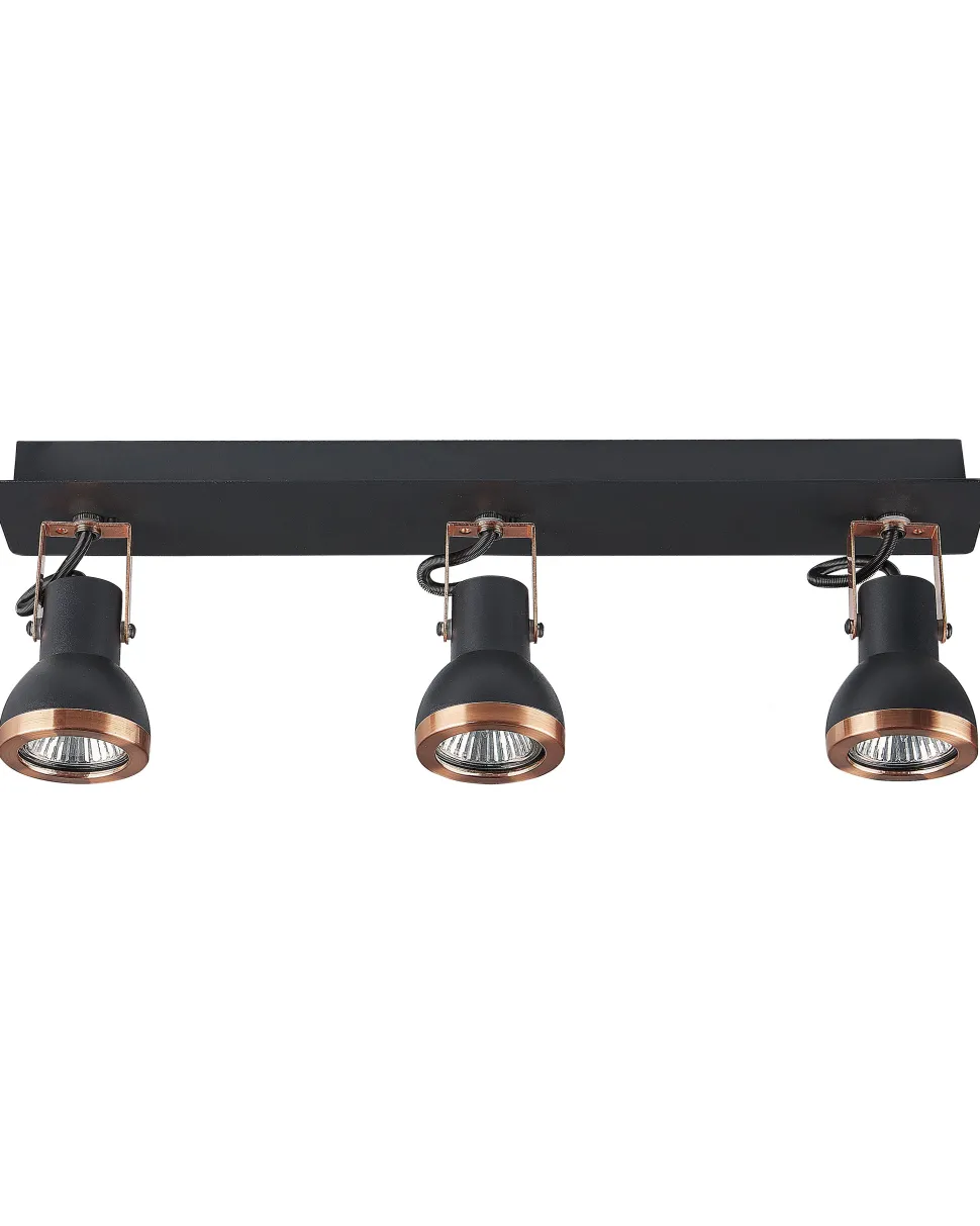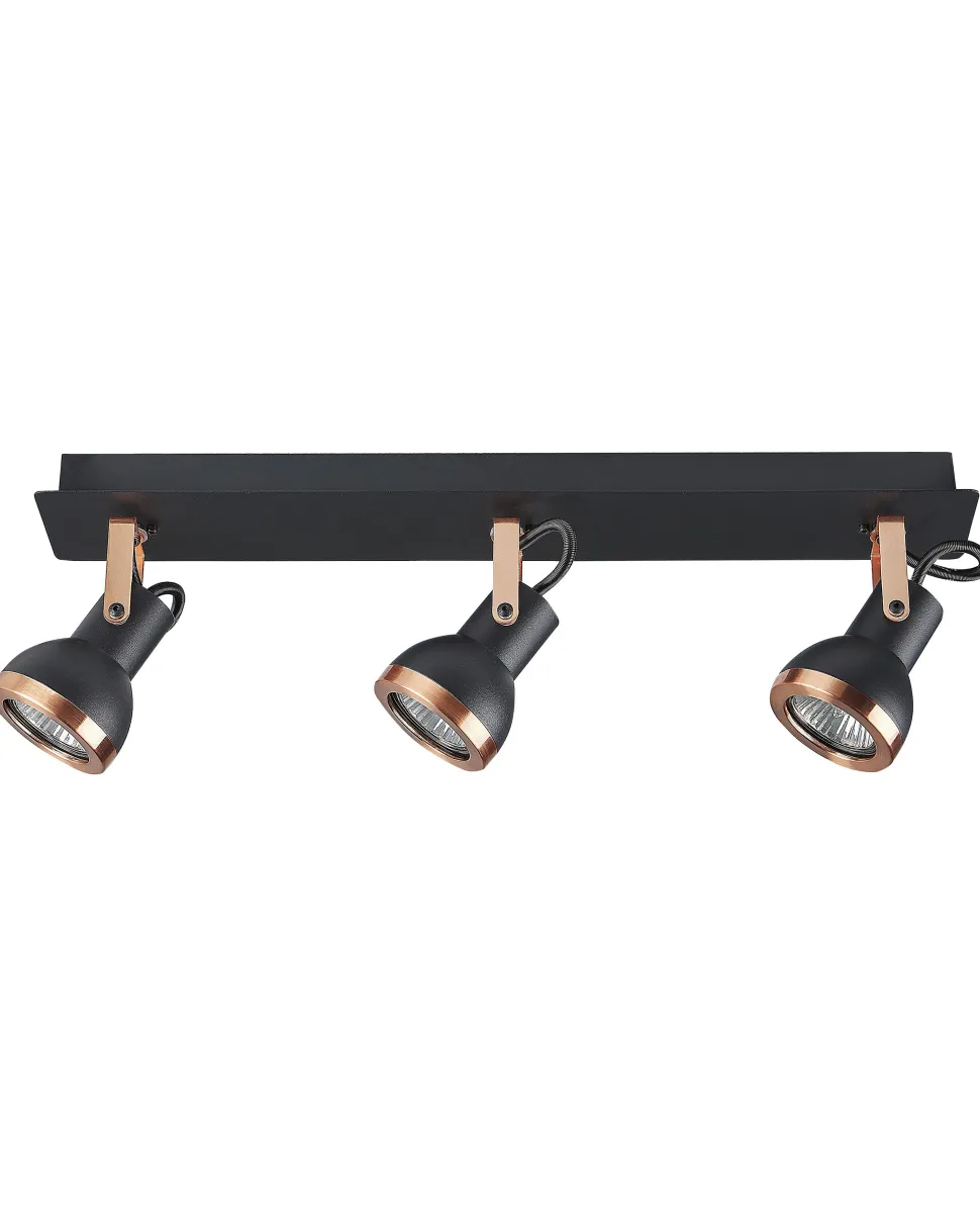 Candeeiro De Teto Metal Preto E Cor De Cobre 3 Luzes Baro