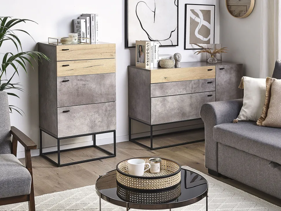 Be the first to review “Comoda Com 4 Gavetas Em Efeito De Concreto E Cor De Madeira Clara Acra” Cancelar resposta