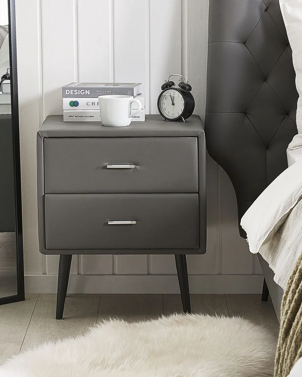 Be the first to review “Mesa De Cabeceira Com 2 Gavetas Em Pele Sintetica Cinzenta Essonne” Cancelar resposta