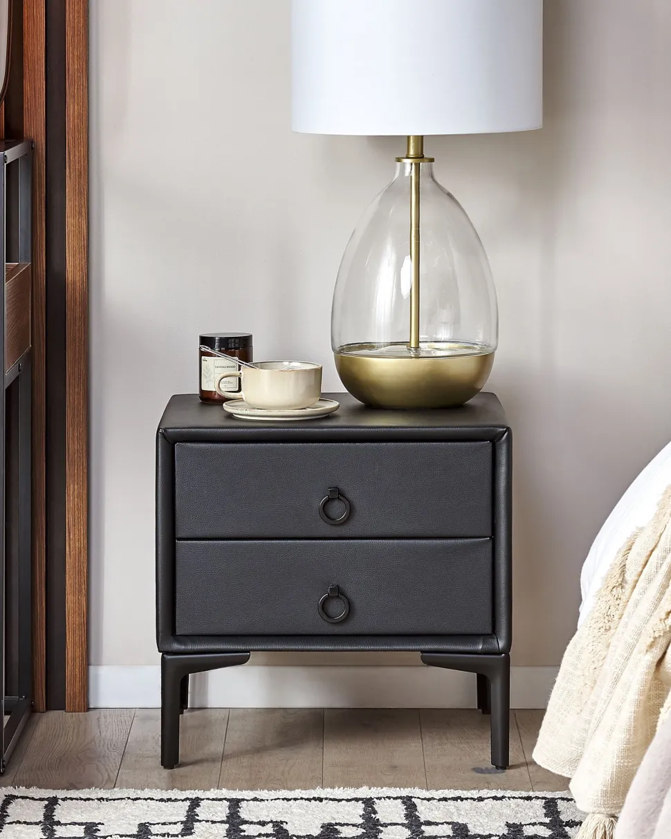Be the first to review “Mesa De Cabeceira Com 2 Gavetas Em Pele Sintetica Preta Sezanne” Cancelar resposta