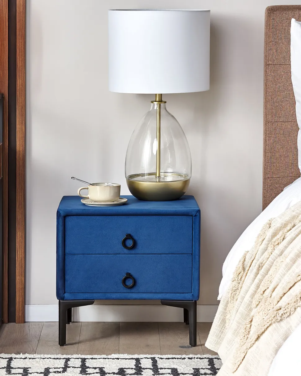 Be the first to review “Mesa De Cabeceira Com 2 Gavetas Em Veludo Azul Marinho Sezanne” Cancelar resposta