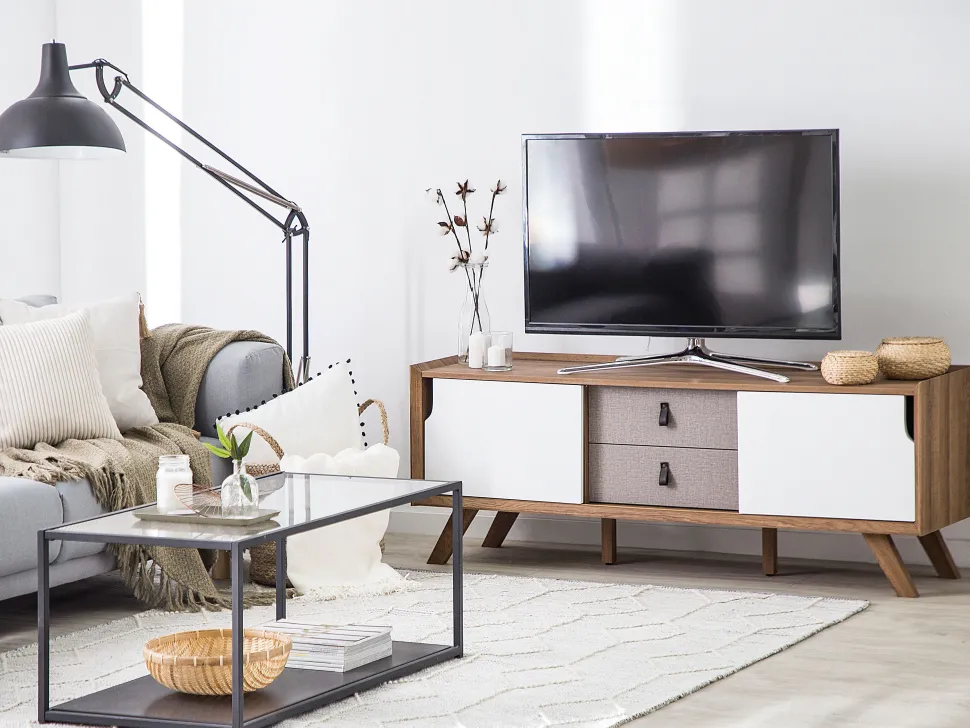 Be the first to review “Movel De Tv Com 2 Gavetas E 2 Portas Em Madeira Clara E Branca Acton” Cancelar resposta