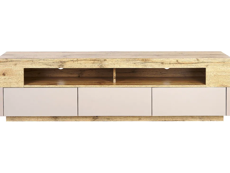 Be the first to review “Movel De Tv Com 3 Gavetas E 2 Prateleiras De Madeira Clara E Creme Antonio” Cancelar resposta