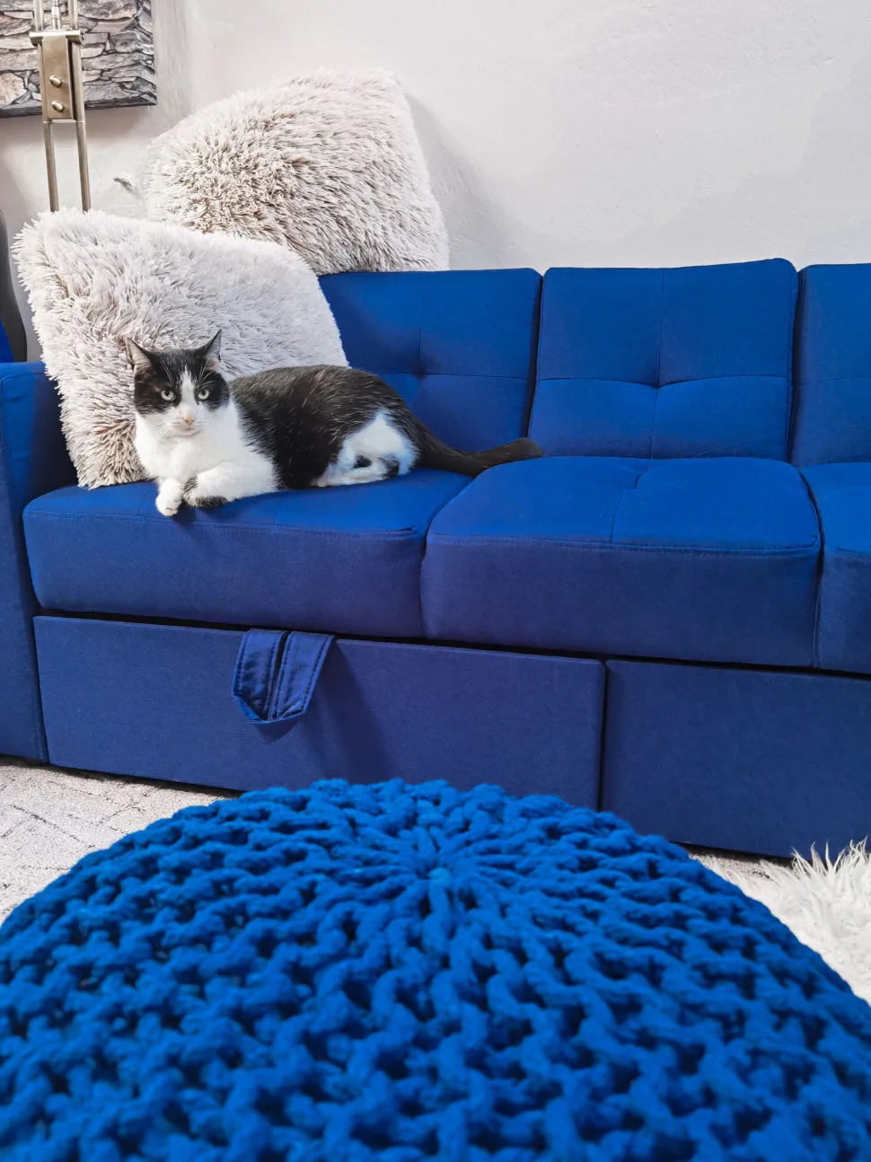 Pufe Redondo Em Tricot Azul 50 X 35 Cm Conrad