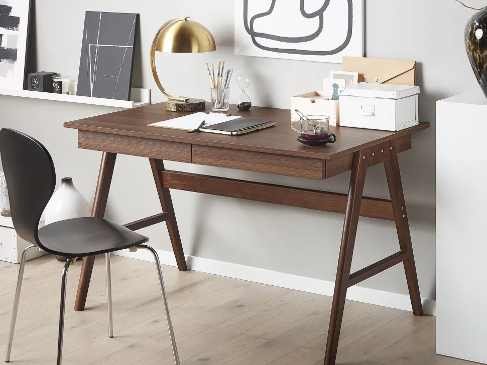 Secretaria Castanha Escura Com 2 Gavetas 120 X 70 Cm Sheslay