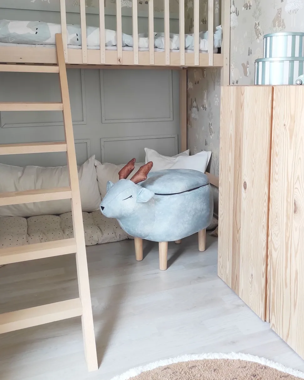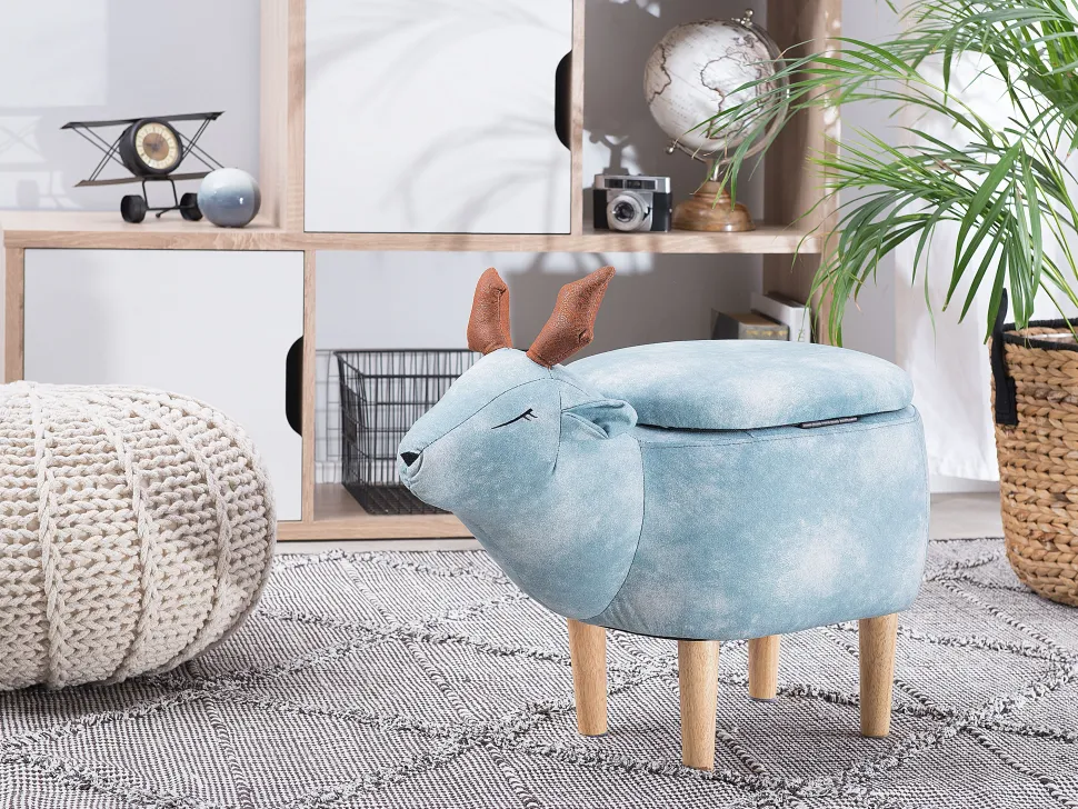 Tamborete Em Tecido Azul Claro Com Arrumação Reindeer