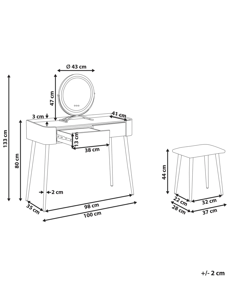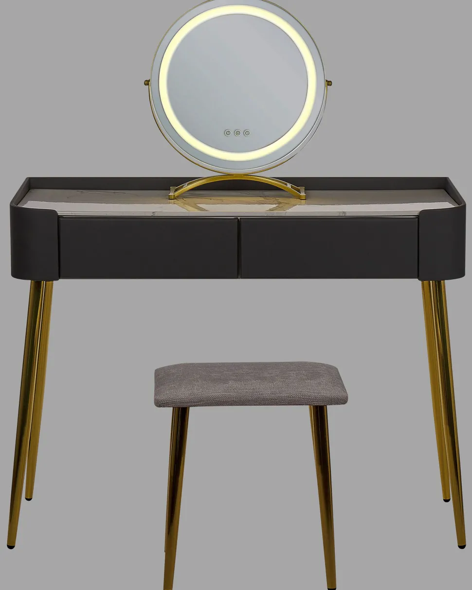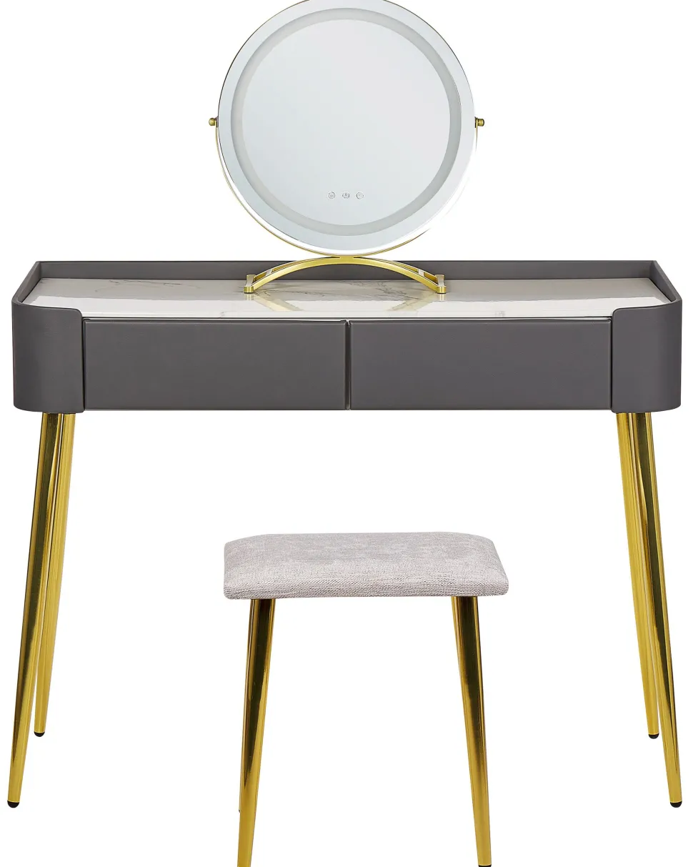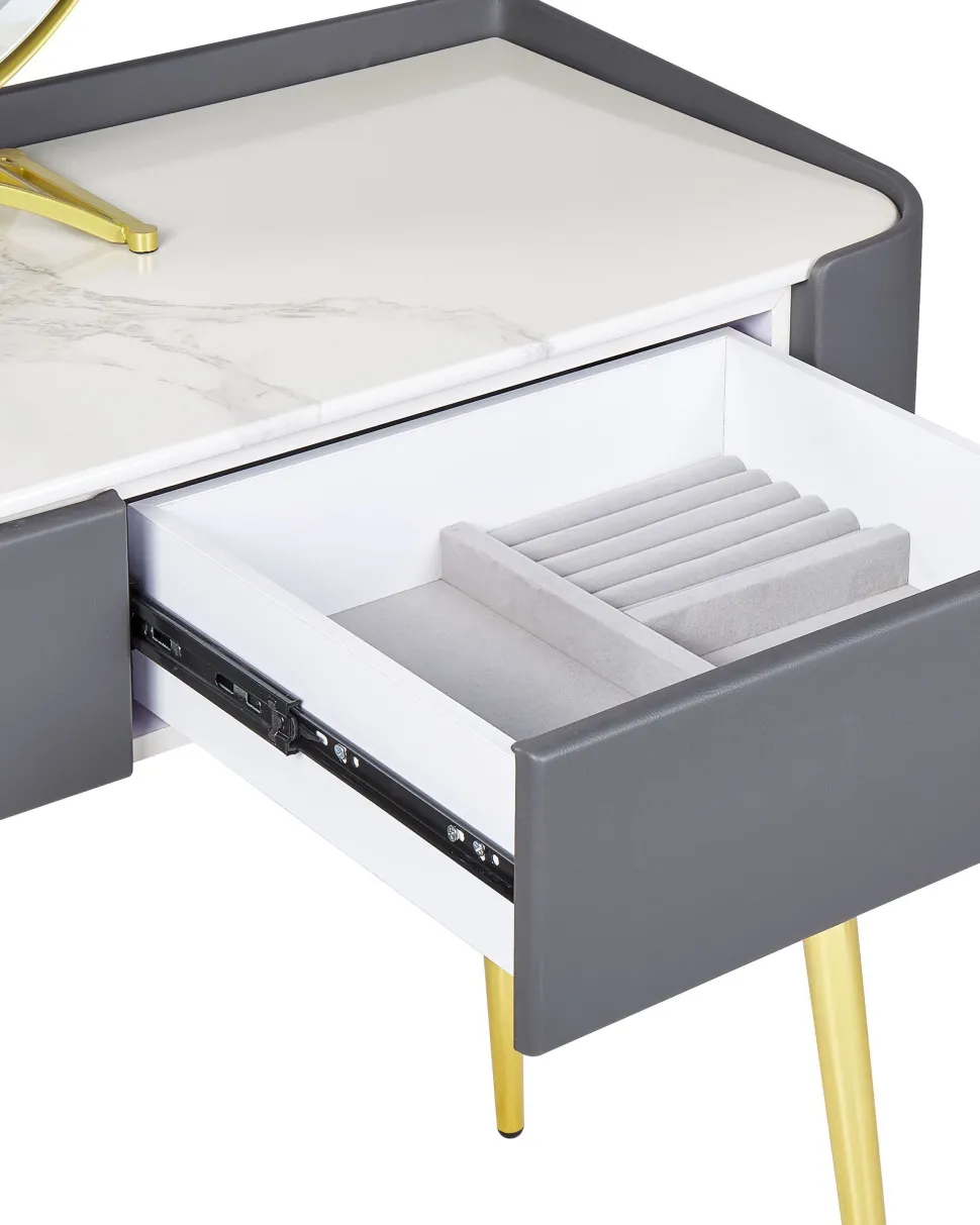 Be the first to review “Toucador Com 2 Gavetas E Banco Cinzento E Dourado Surin” Cancelar resposta