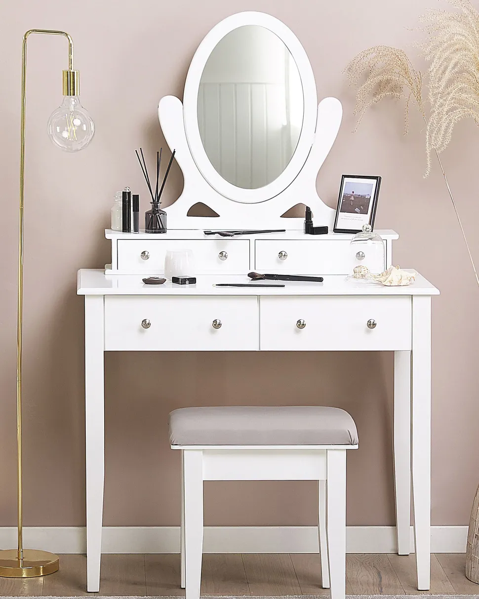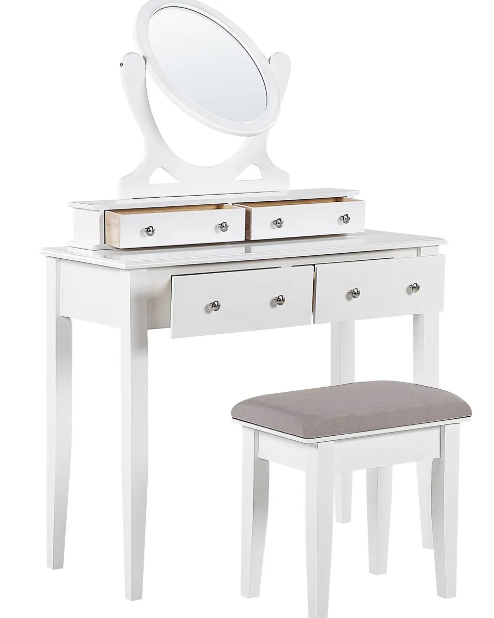 Be the first to review “Toucador Com 4 Gavetas E Banco Branco Lune” Cancelar resposta