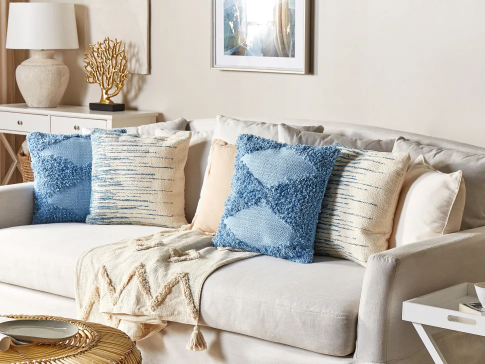 Almofada Decorativa Creme E Azul 45 X 45 Cm Rivina