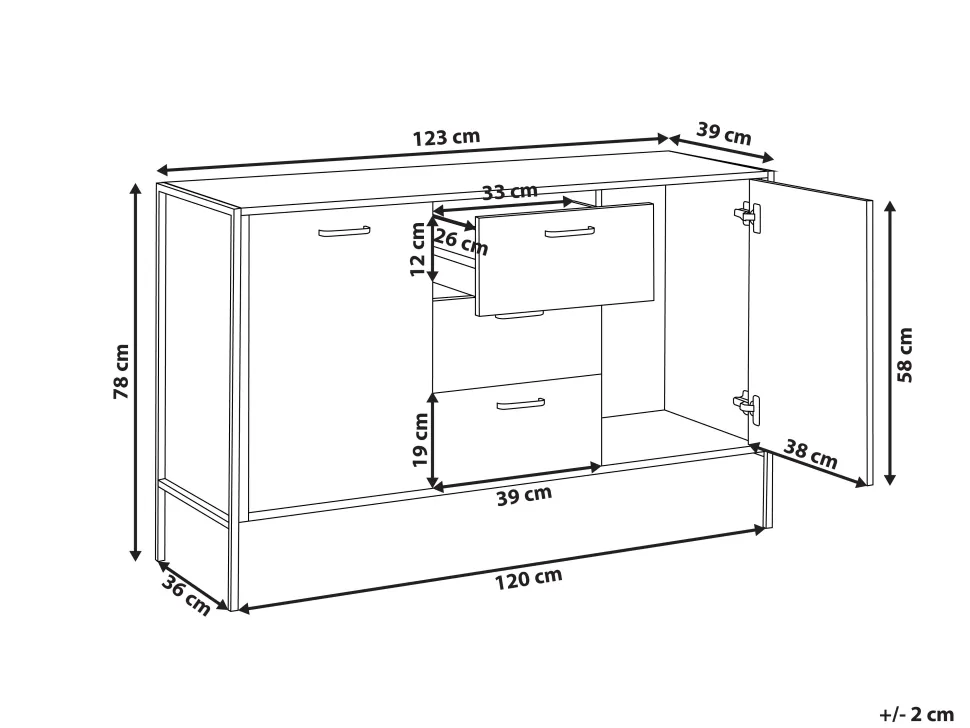 Be the first to review “Aparador Com 3 Gavetas E 2 Portas Castanho Escuro E Preto Tifton” Cancelar resposta