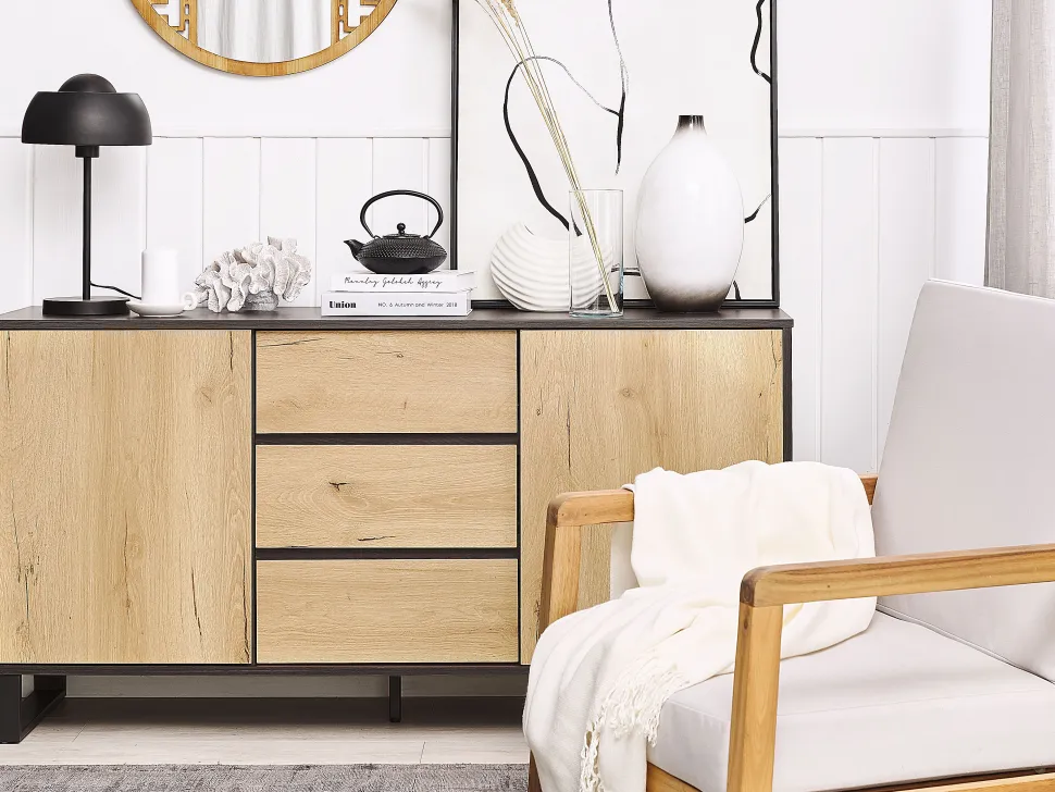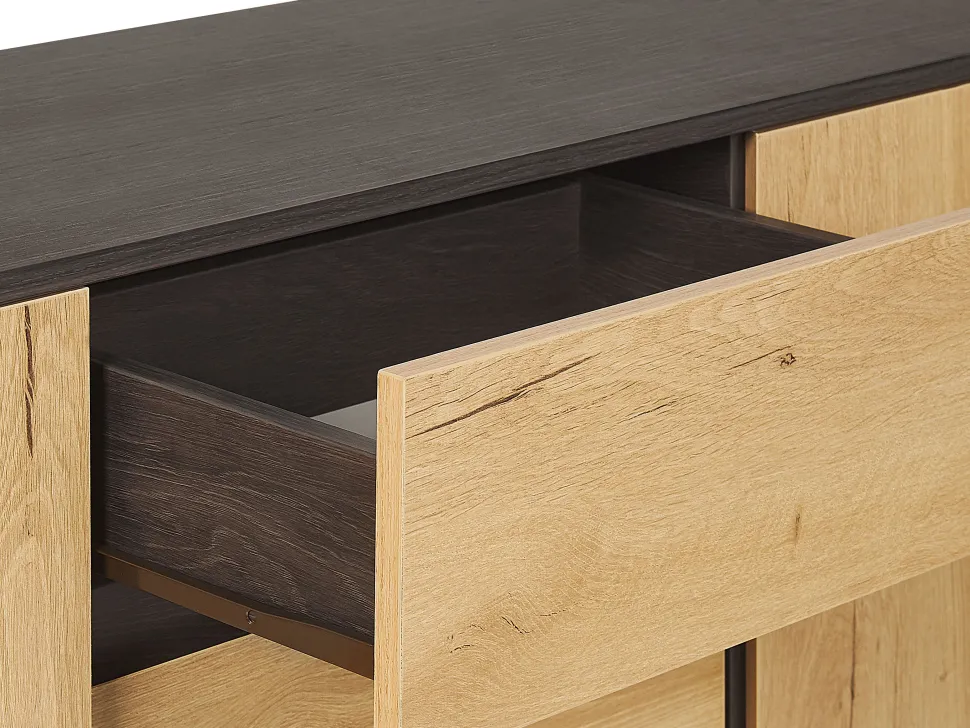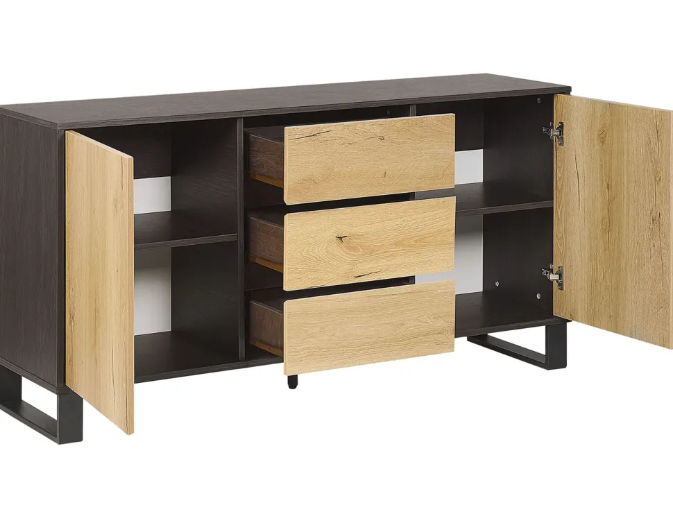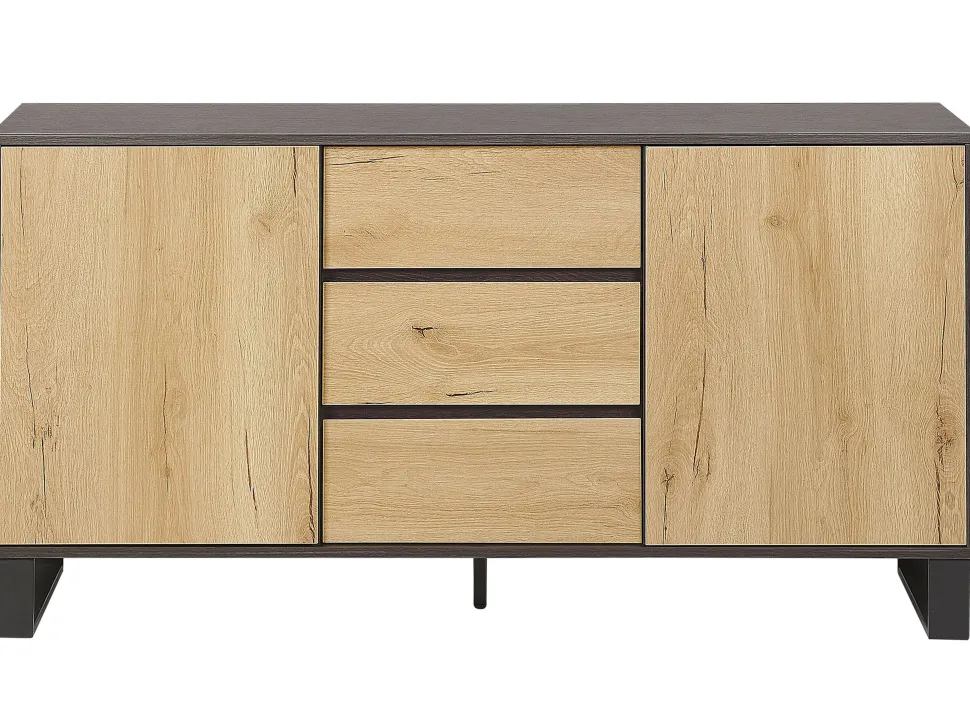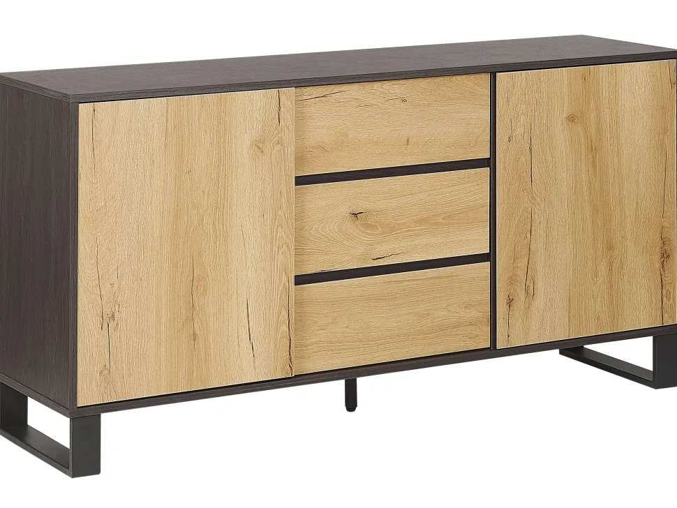Be the first to review “Aparador Com 3 Gavetas E 2 Portas Cor De Madeira Clara E Preto Elda” Cancelar resposta