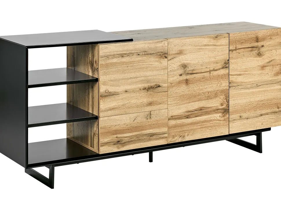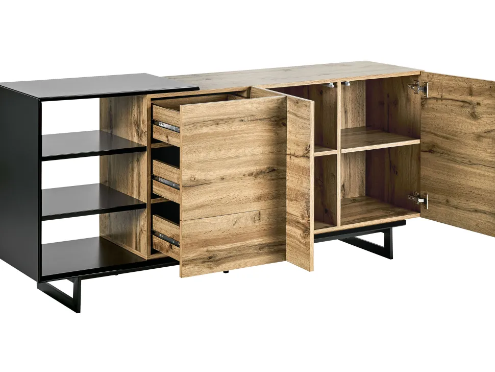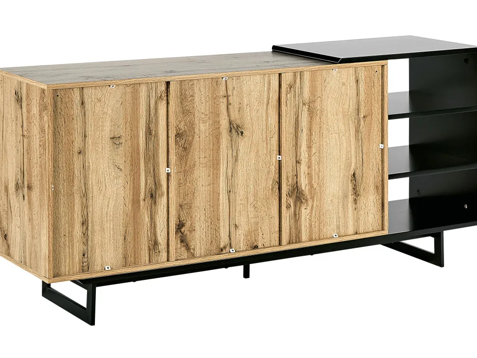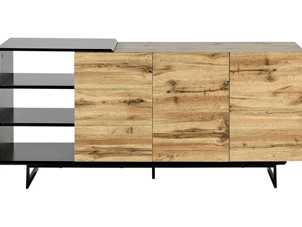 Be the first to review “Aparador Com 3 Gavetas E 2 Portas Cor De Madeira Clara E Preto Fiora” Cancelar resposta