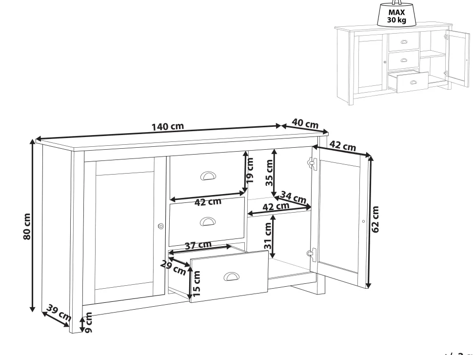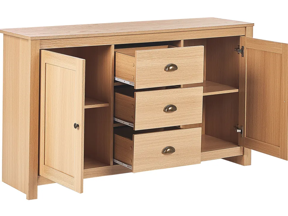 Aparador Com 3 Gavetas E 2 Portas Cor De Madeira Clara Lansin