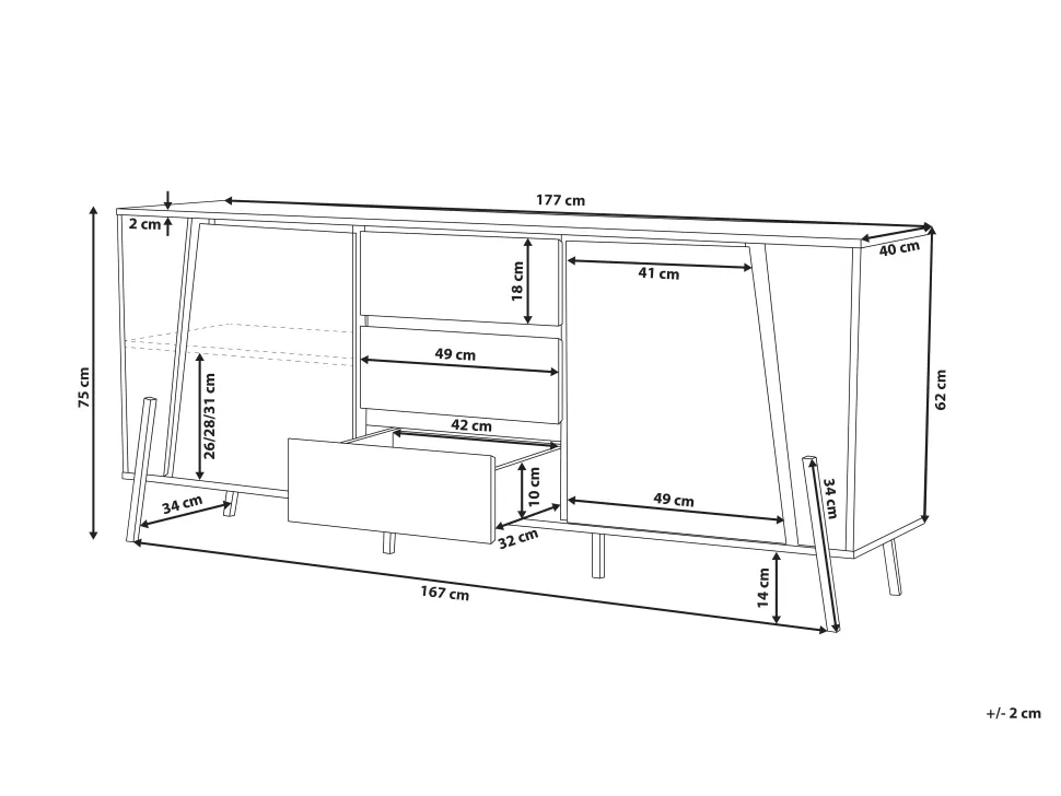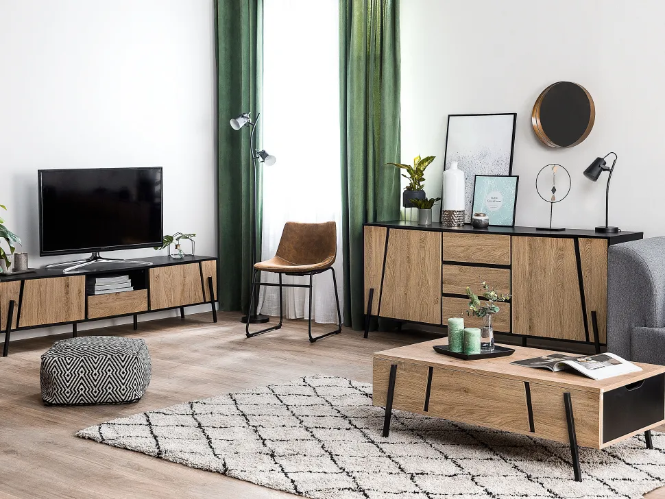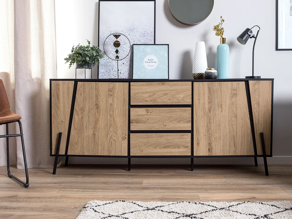 Be the first to review “Aparador Com 3 Gavetas E 2 Portas Cor De Madeira Escura Blackpool” Cancelar resposta