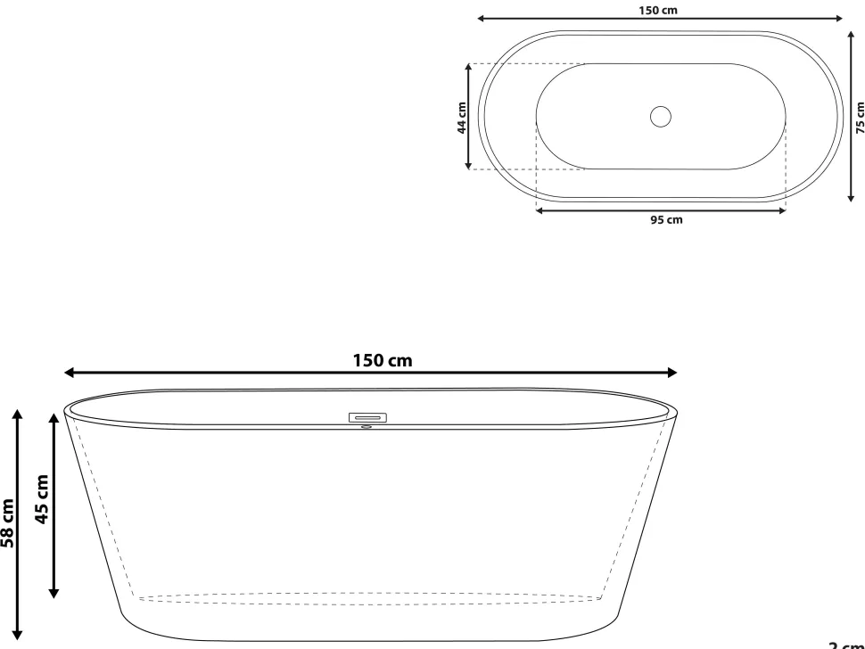 Banheira Autonoma Em Acrilico Preto 150 X 75 Cm Havana