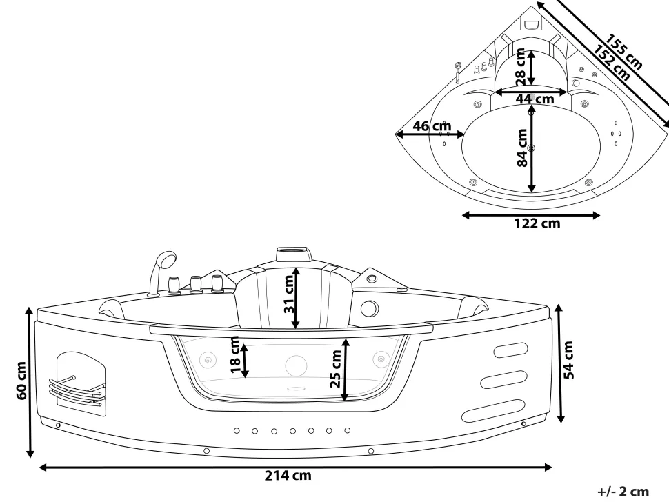Banheira De Hidromassagem De Canto Em Acrilico Branco Com Led 214 X 155 Cm Martinica