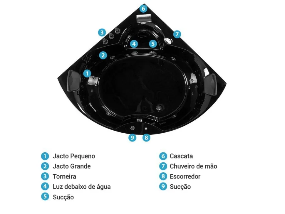 Be the first to review “Banheira De Hidromassagem De Canto Em Acrilico Preto Com Led 145 X 145 Cm Senado” Cancelar resposta