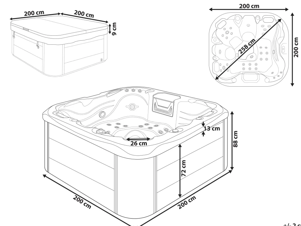 Banheira De Hidromassagem De Exterior Em Acrilico Azul Com Led 200 X 200 Cm Lastarria