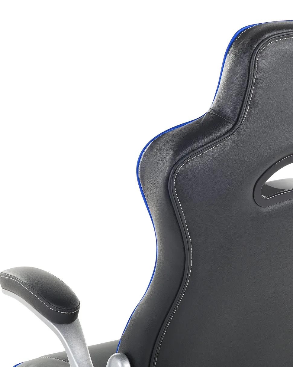 Cadeira De Escritorio Em Pele Sintetica Preta E Azul Master