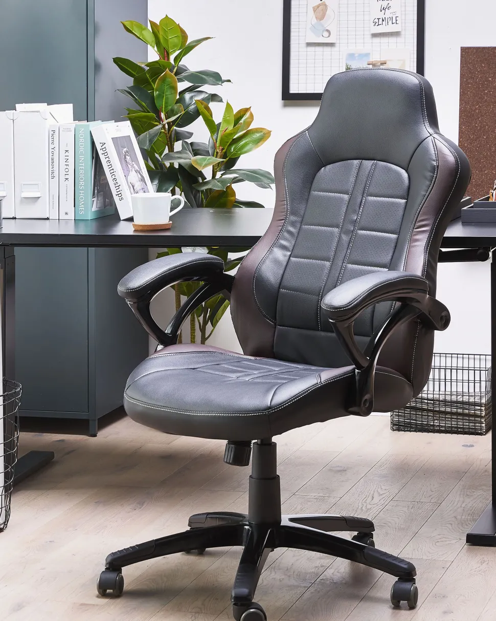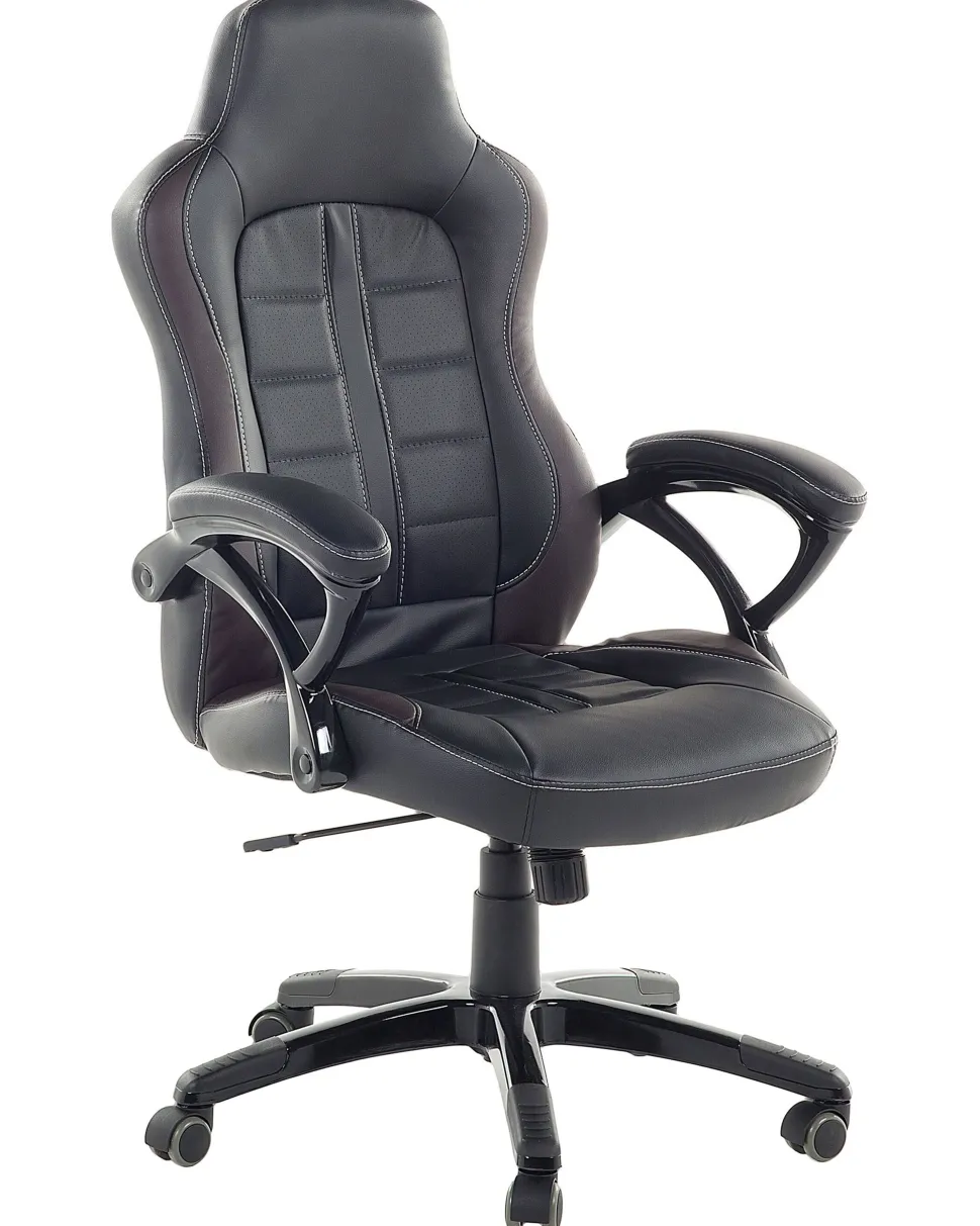 Cadeira De Escritorio Em Pele Sintetica Preta E Castanha Escura Prince