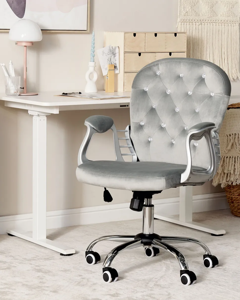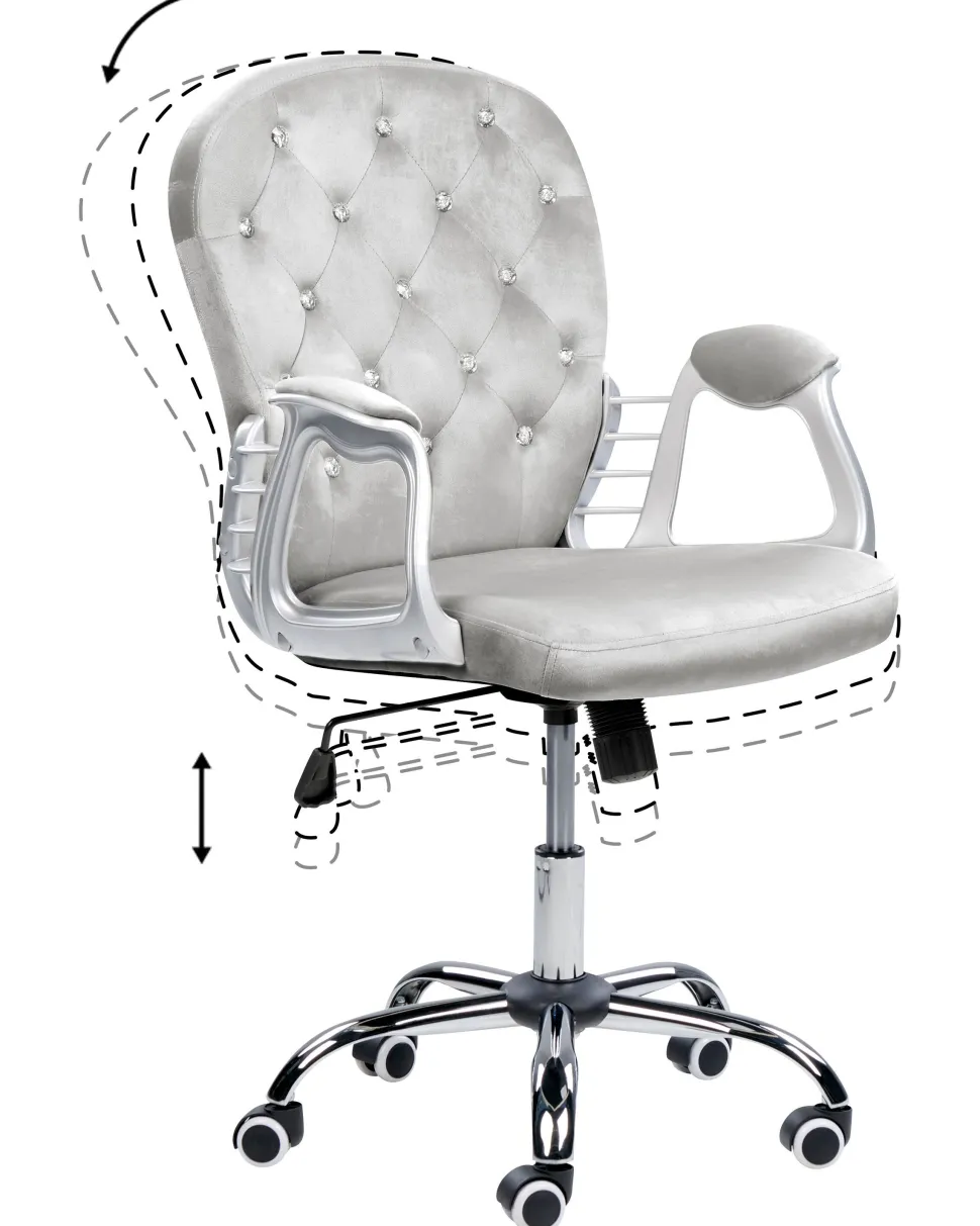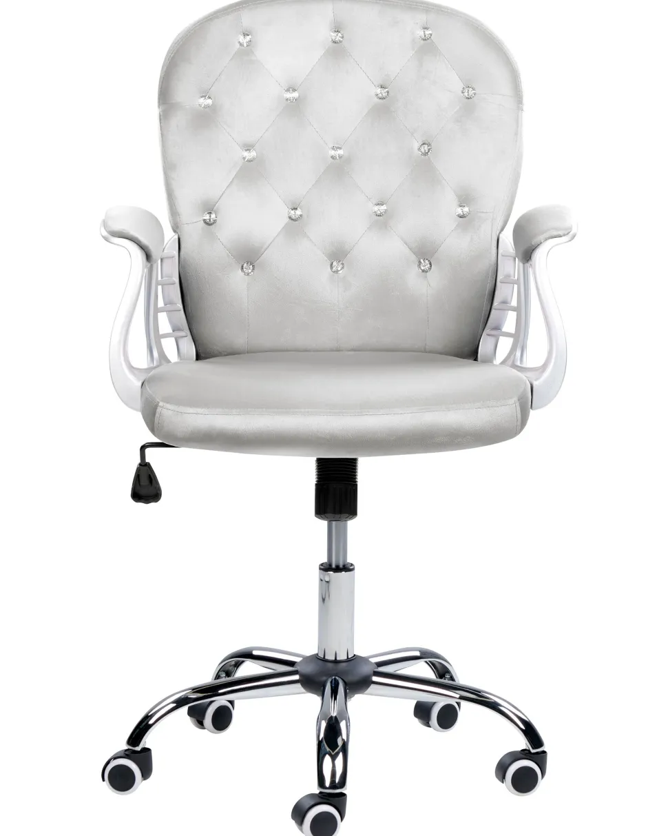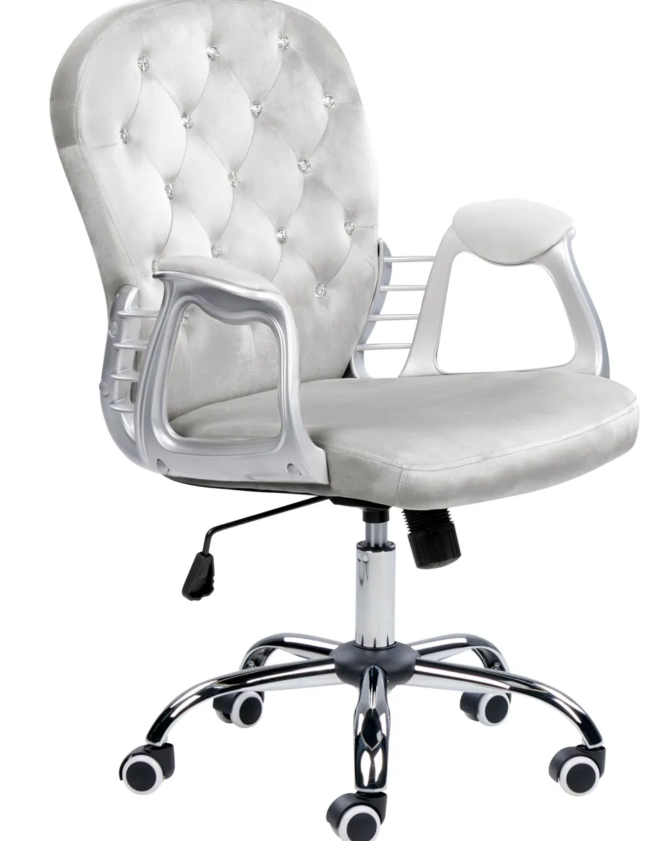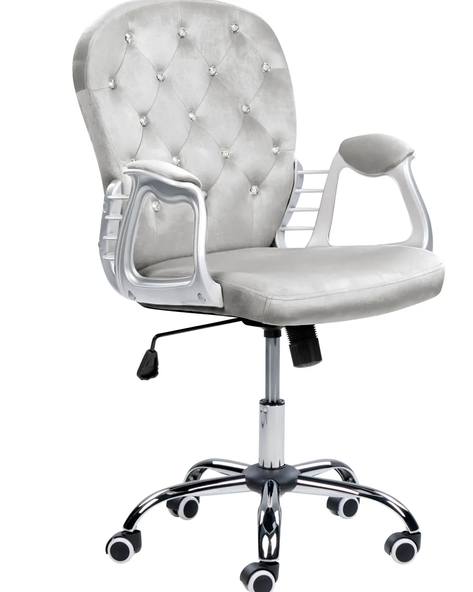 Cadeira De Escritorio Em Veludo Cinzento Claro Com Cristais Princess