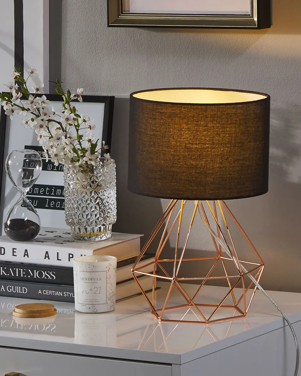 Candeeiro De Mesa 35 Cm Preto E Cor De Cobre Maroni