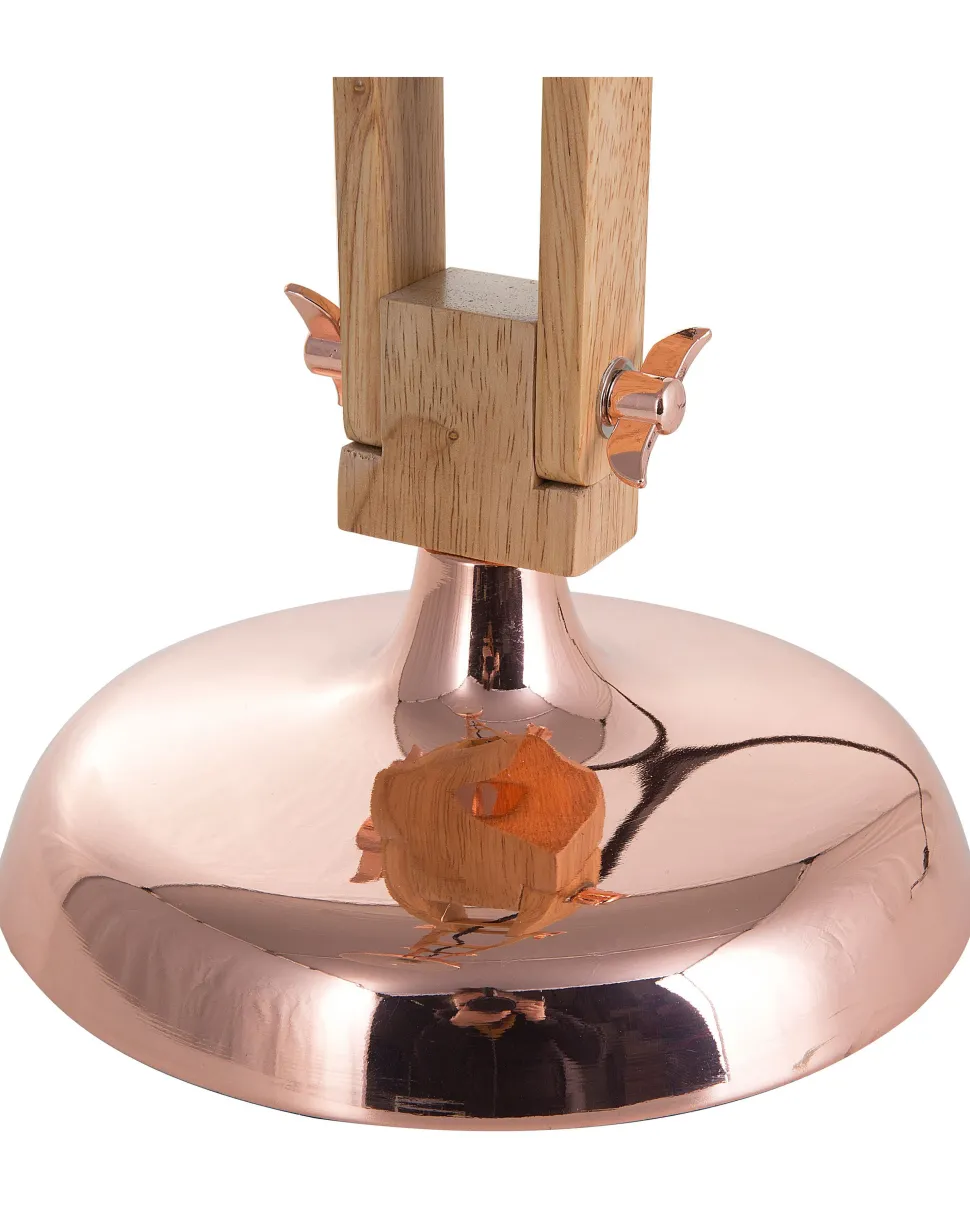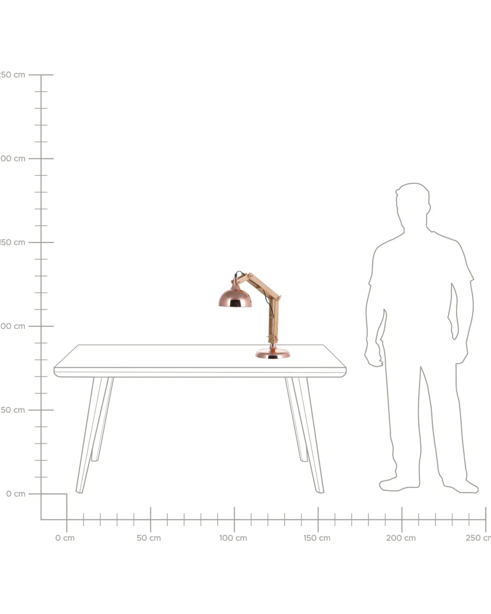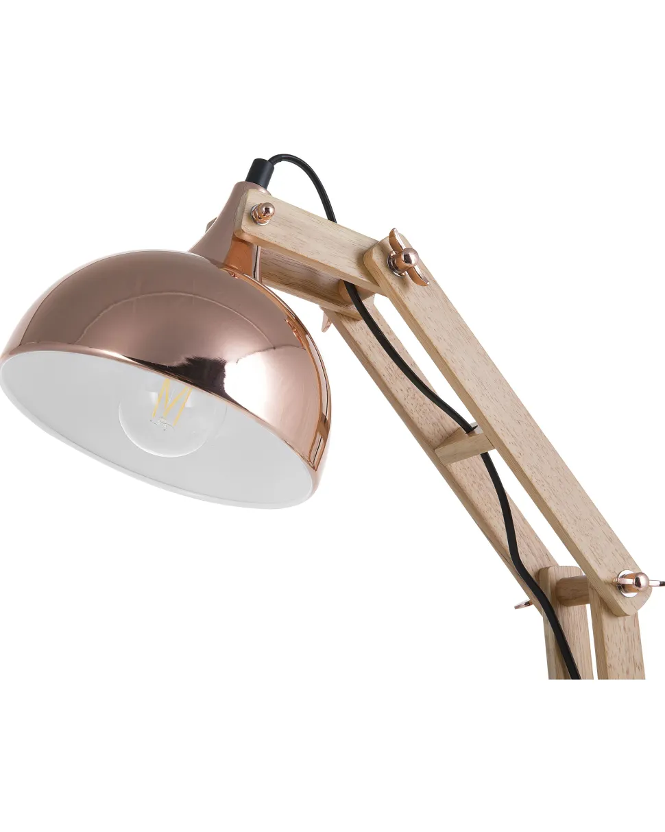 Candeeiro De Mesa Articulado Em Metal Cor De Cobre E Madeira Salado