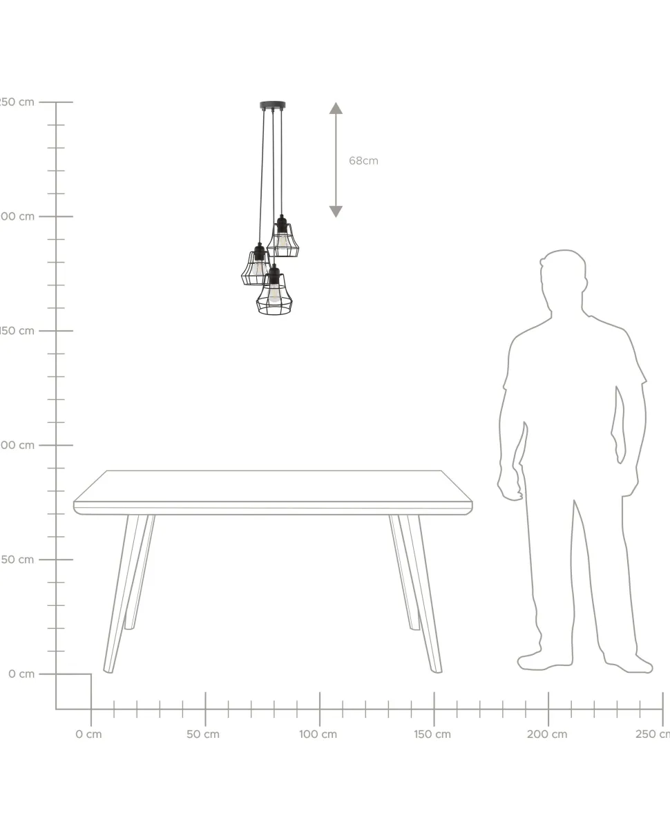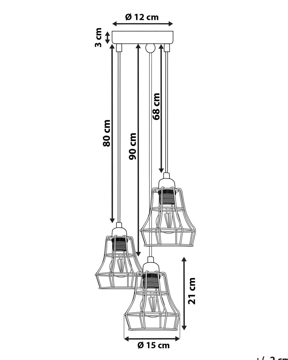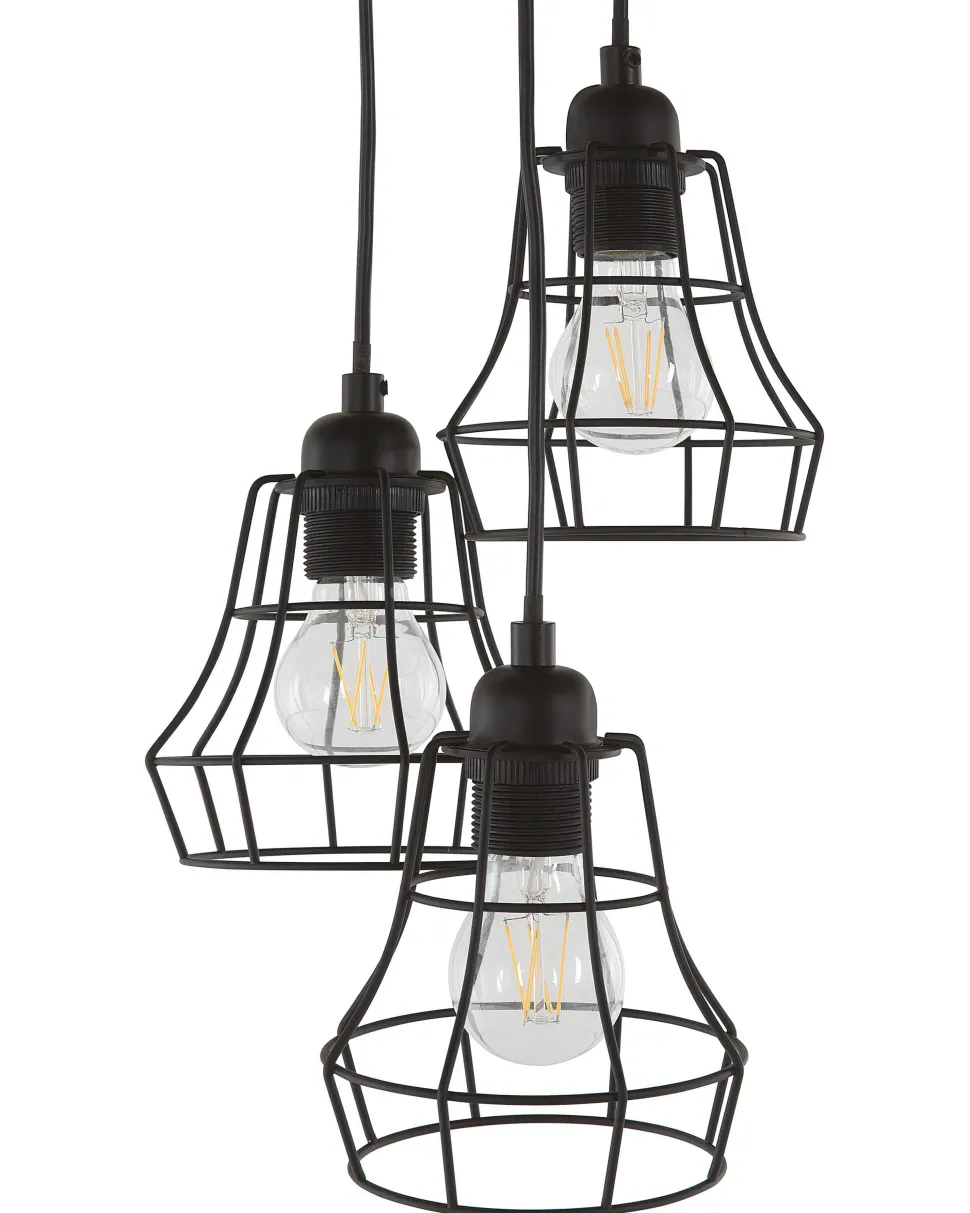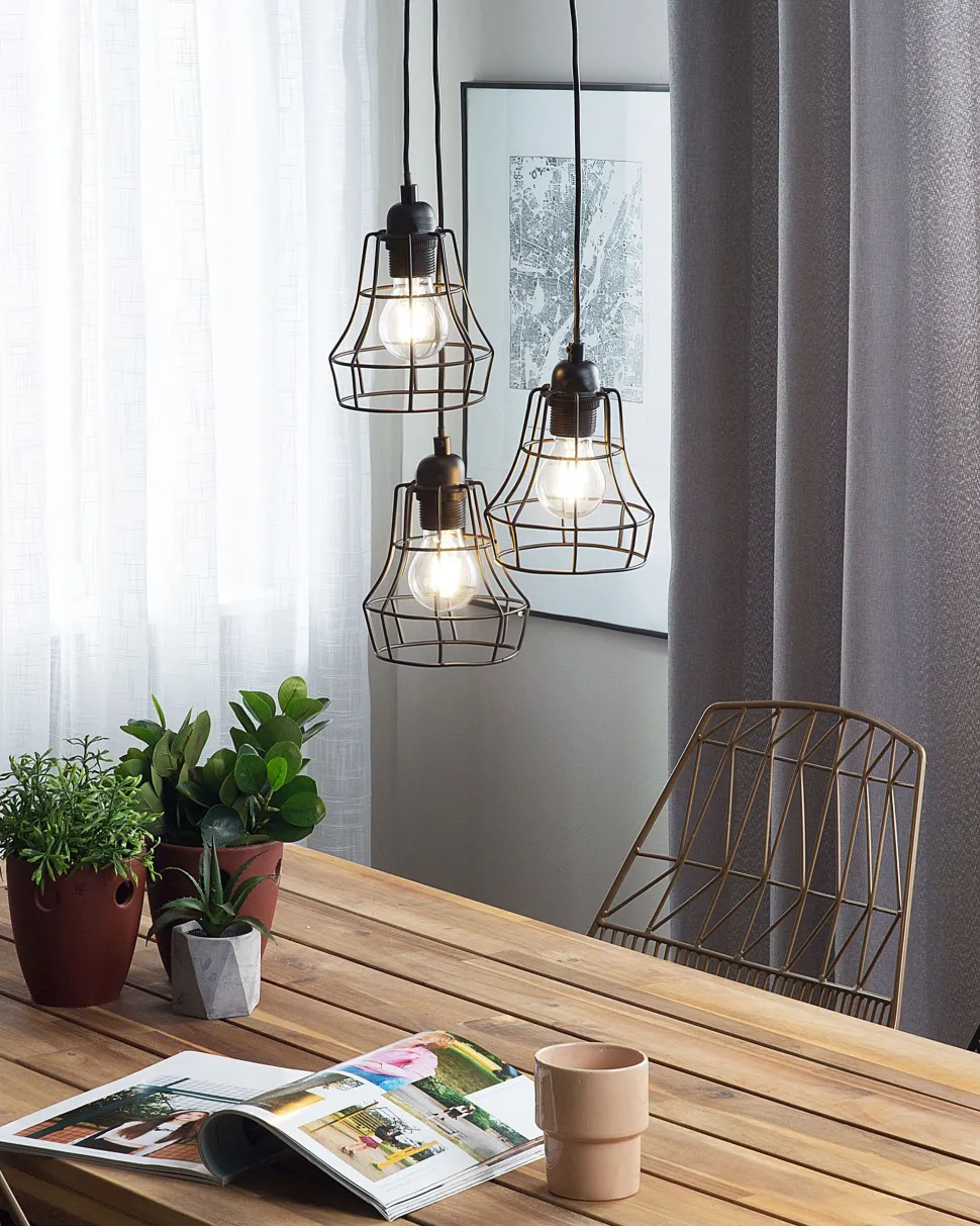 Candeeiro De Teto Preto Com 3 Unidades Pecwan